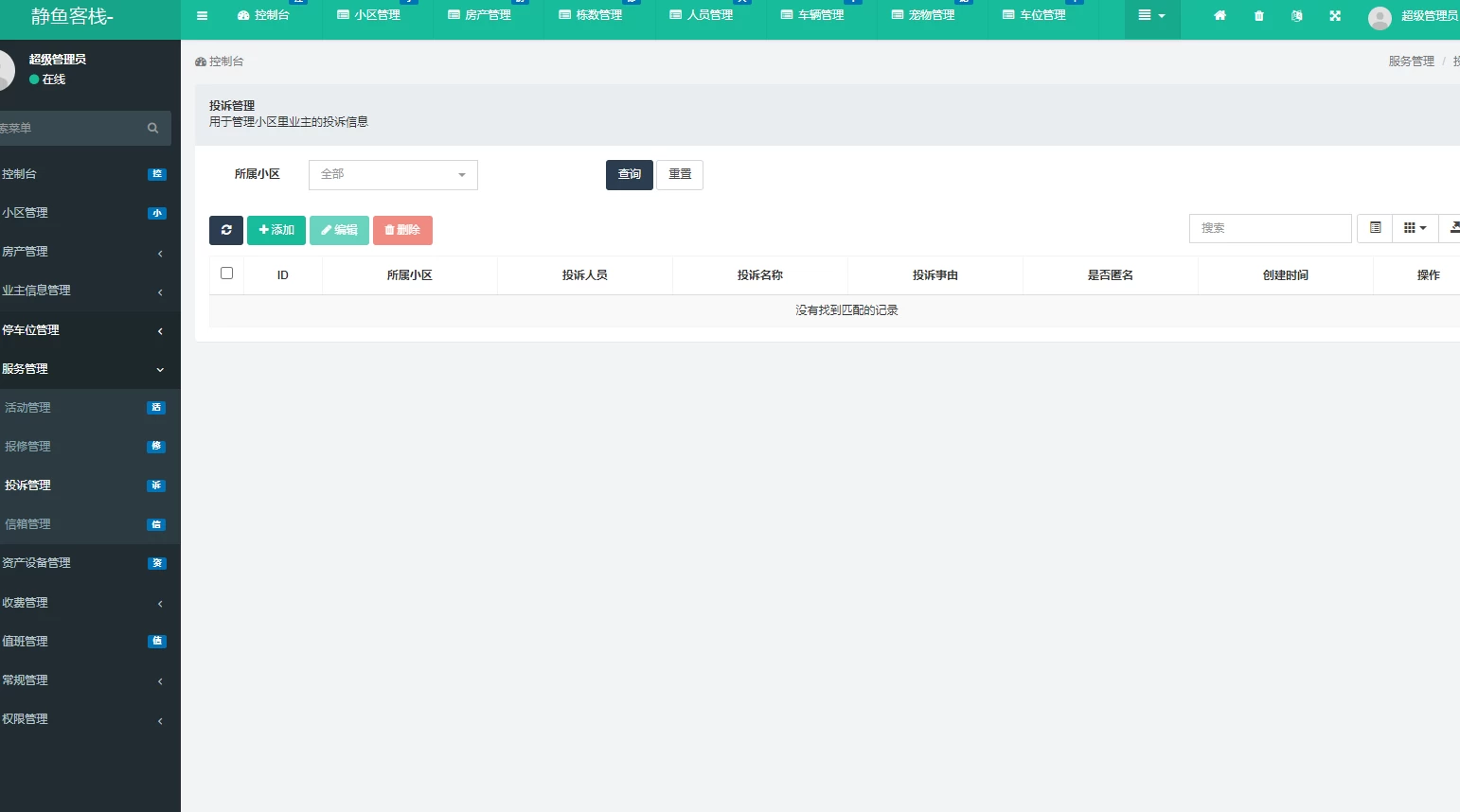 服务管理:提供物业服务管理功能,包括服务预约、投诉处理等。