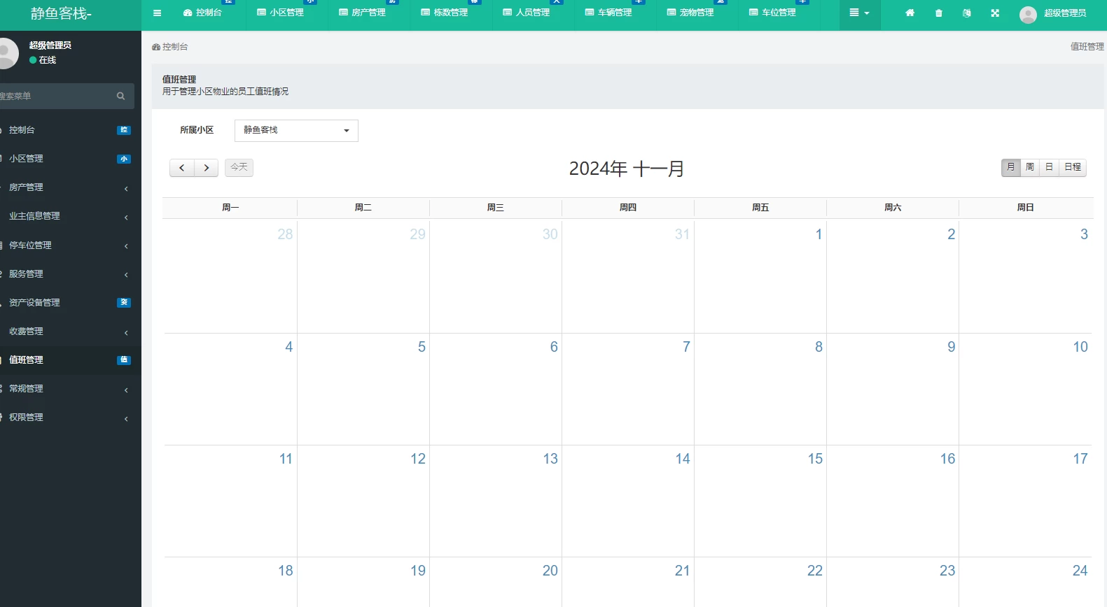 值班管理:提供值班人员排班、考勤等功能,确保小区安全有序。