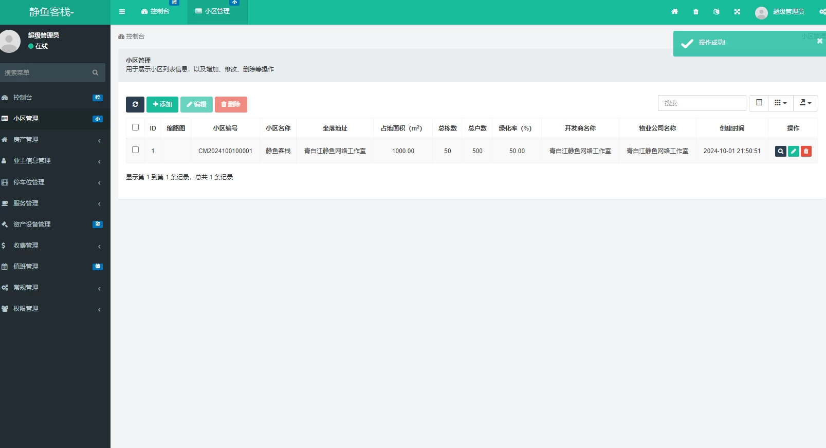 资产设备管理:对小区内的资产设备进行登记、维护和管理,确保设备正常运行。