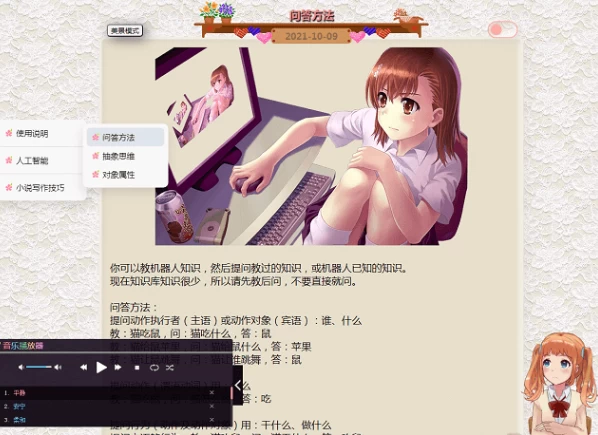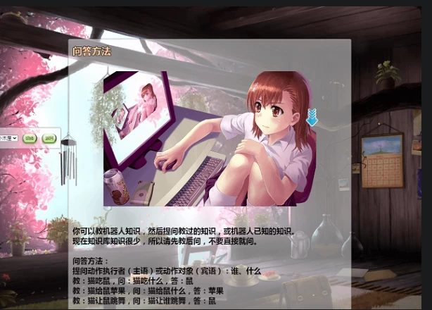 站长评测:你可以教机器人知识,然后提问教过的知识,或她已知的知识。 现在知识库知识太少,请按使用说明,先教后问,不要直接就问。 资源下载此资源下载价格为6.6U点点击检测网盘有效后购买,VIP免费立即升级客服QQ:305582964 联系邮箱:305582964@qq.com