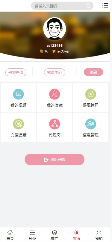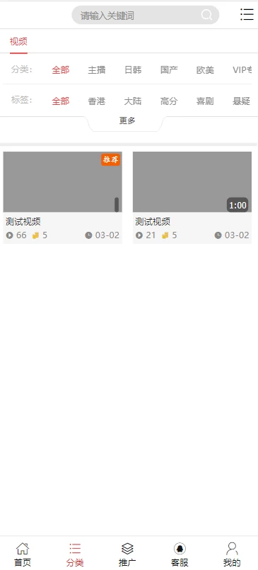 前后端分离设计,支持游客登陆、VIP会员、代理推广系统、免费观看、单独设置付费点播。
