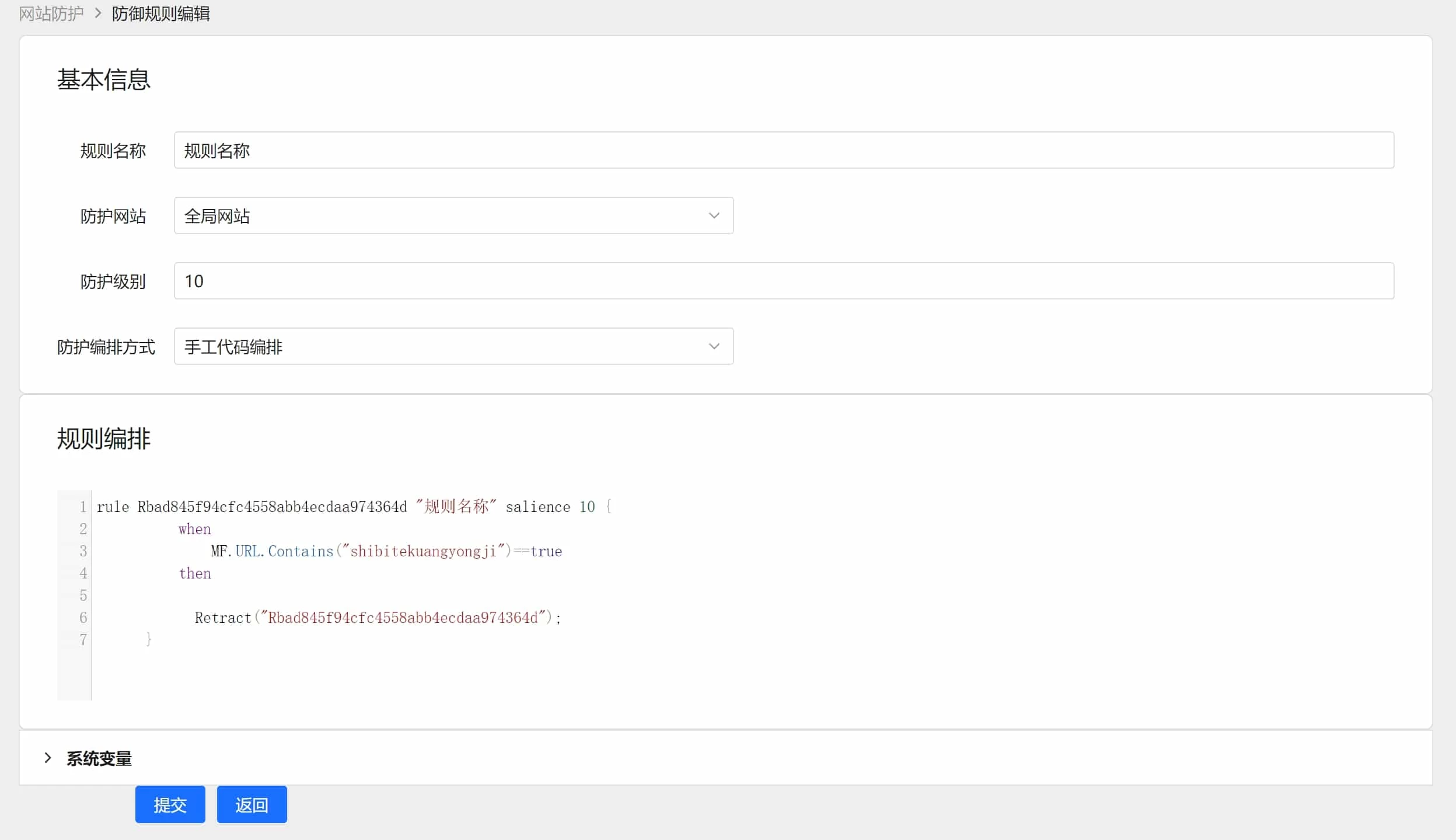 自定义防护规则,支持脚本和界面编辑