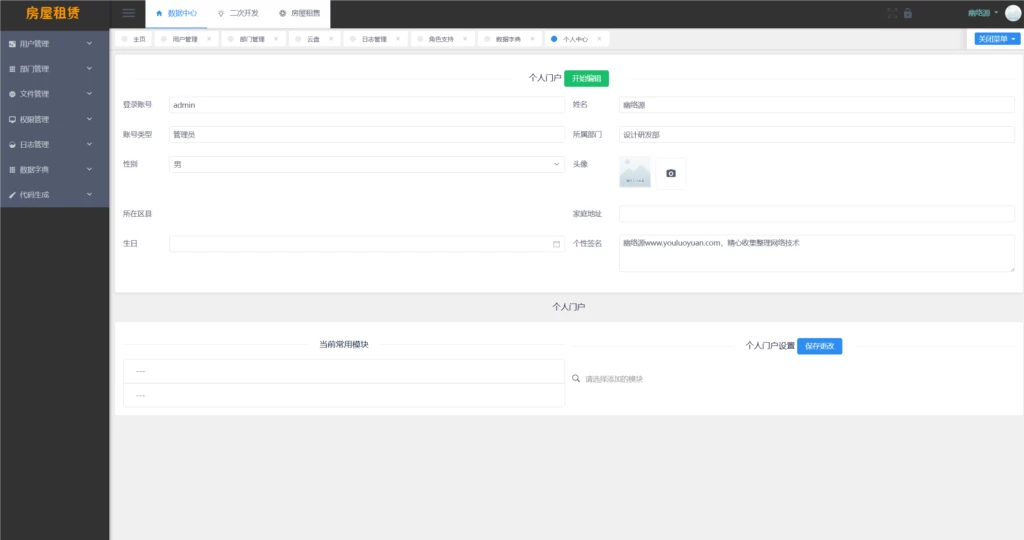 推测其原始版本可能是一个员工管理系统,经过二次开发后,功能被拓展和调整,现已完全适用于房屋租赁业务。