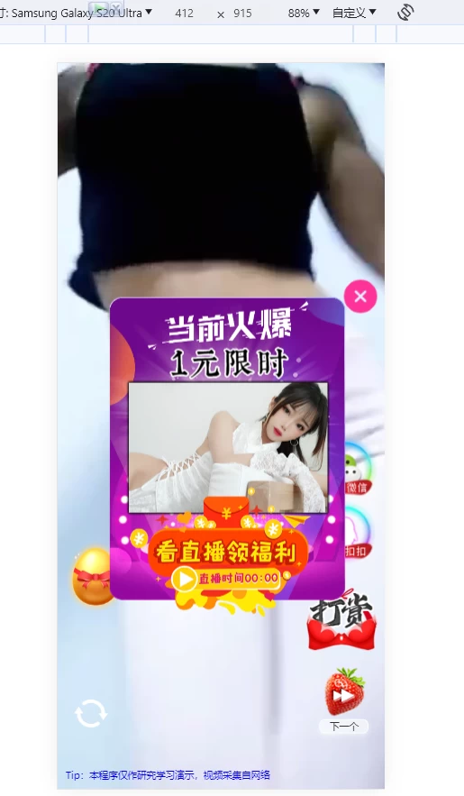 超酷美女短视频吸粉引流,带定时弹广告短视频自动随机视频播放,带个性广告设置,