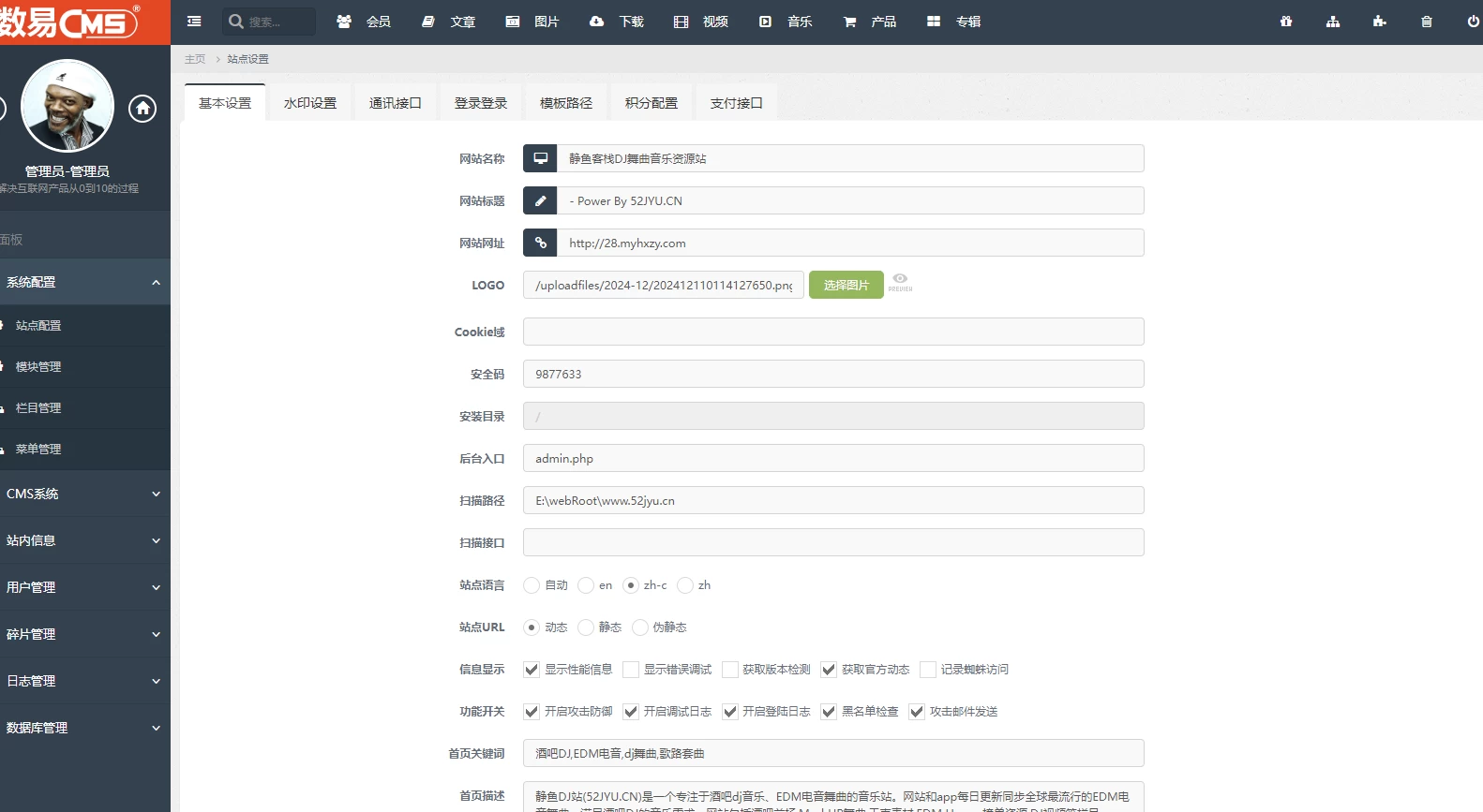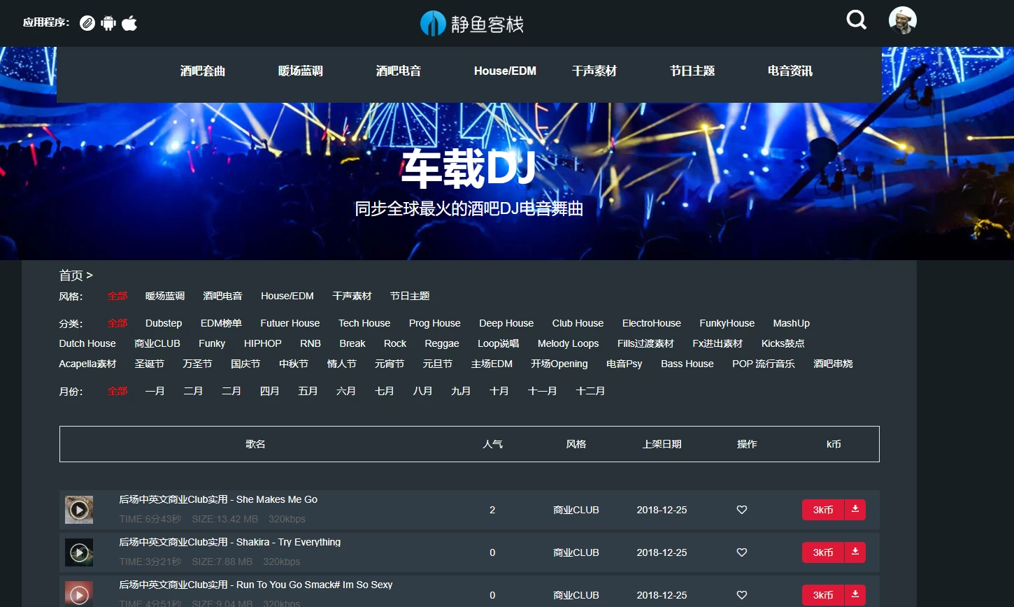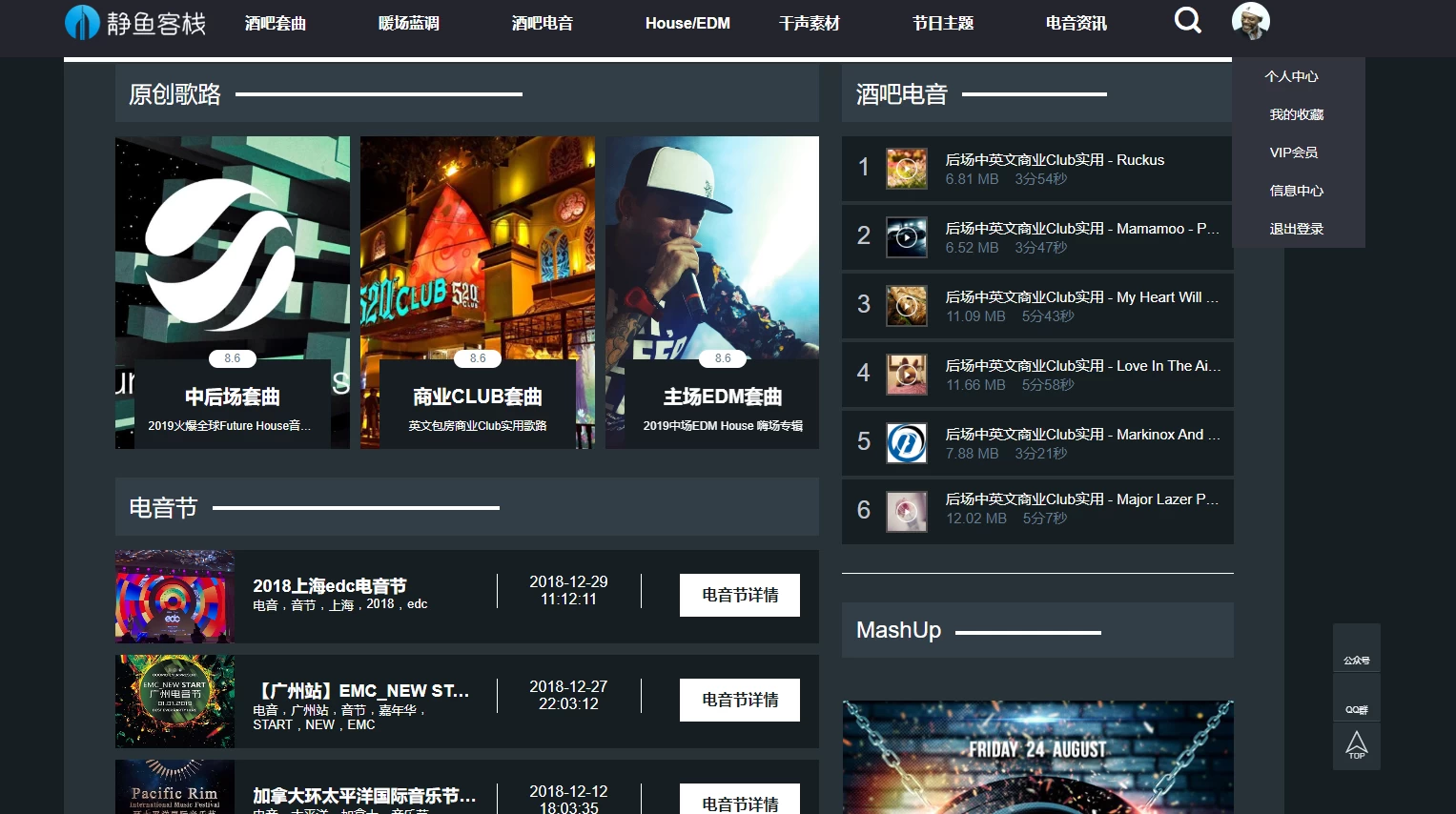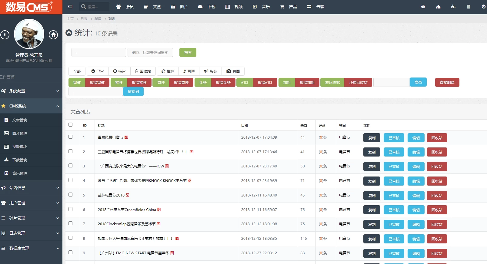 6 CMS模块:电音节,DJ文化,DJ资讯;可扩展为图片模块、视频模块、下载模块