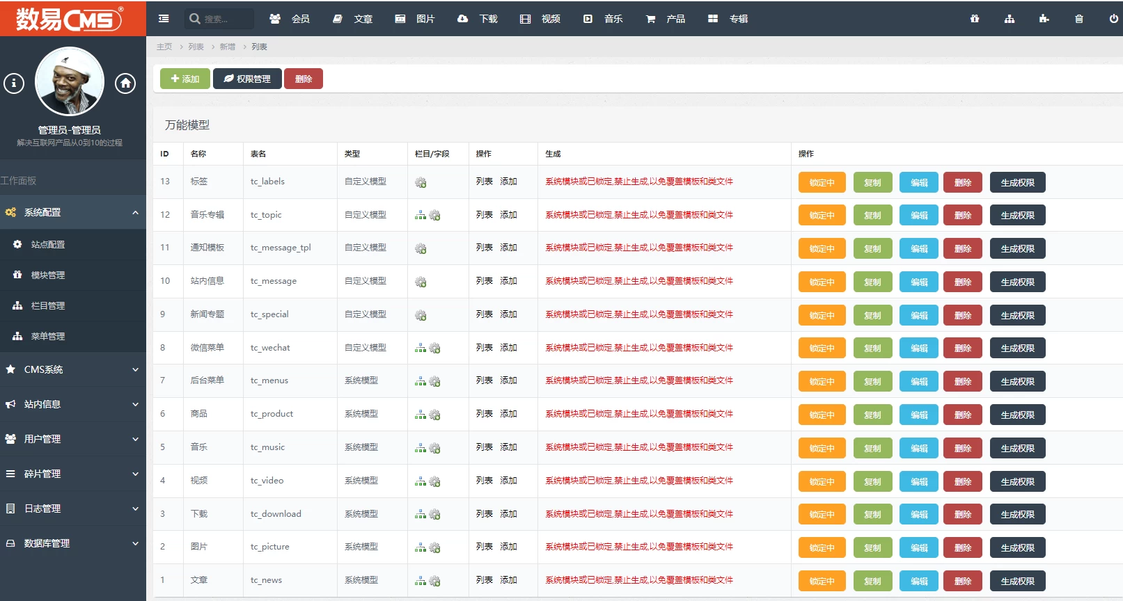 权限管理:菜单权限、操作权限6 CMS模块:电音节,DJ文化,DJ资讯;可扩展。