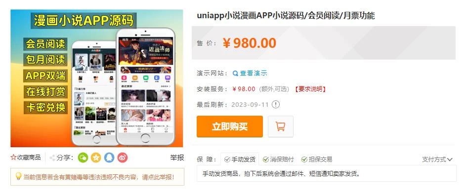 静鱼客栈 APP/小程序/源码 【测】某站价值980的uniapp小说漫画APP小说源码/会员阅读/月票功能 https://wp.muooy.cn/29528.html