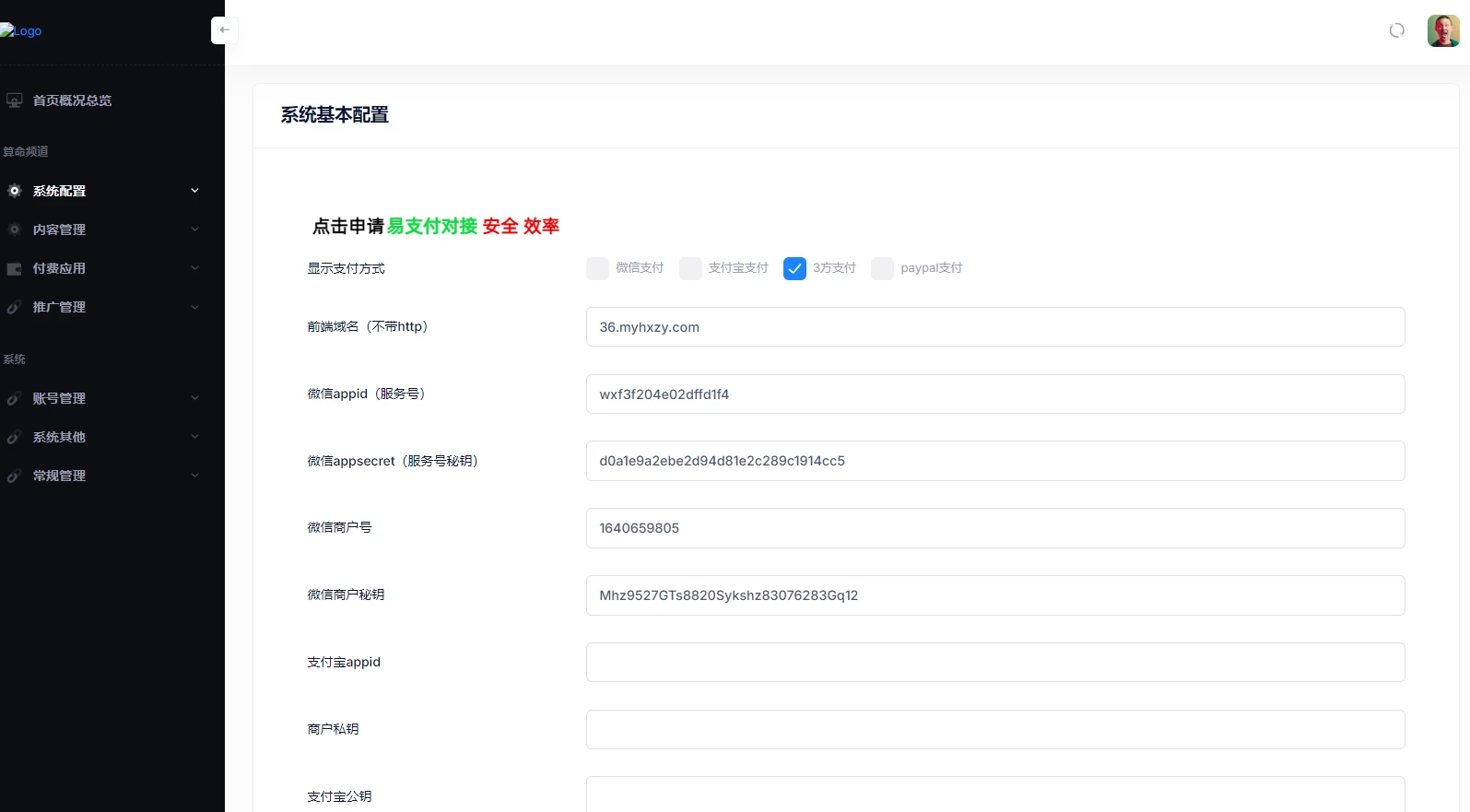 支付支持第三方已支付和官方微信支付宝加虎皮椒支付