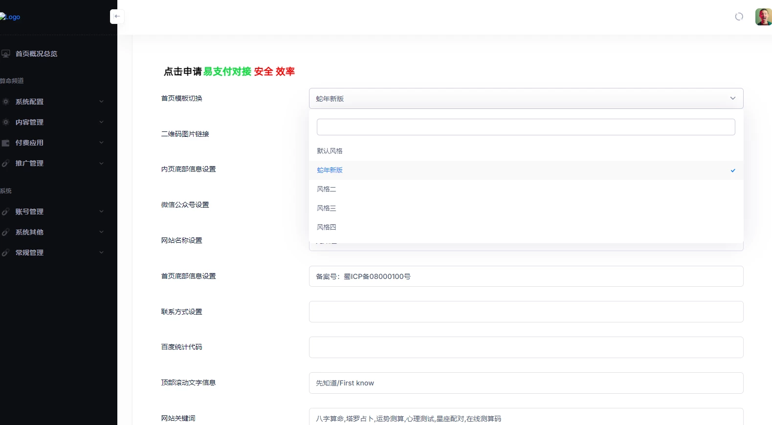 这个版本提供了多种风格,包括后台也进行了美化,不过经过站长测试发现 后台框架没有完全的对接,很多信息显示不出来,需要的可以自行二改~