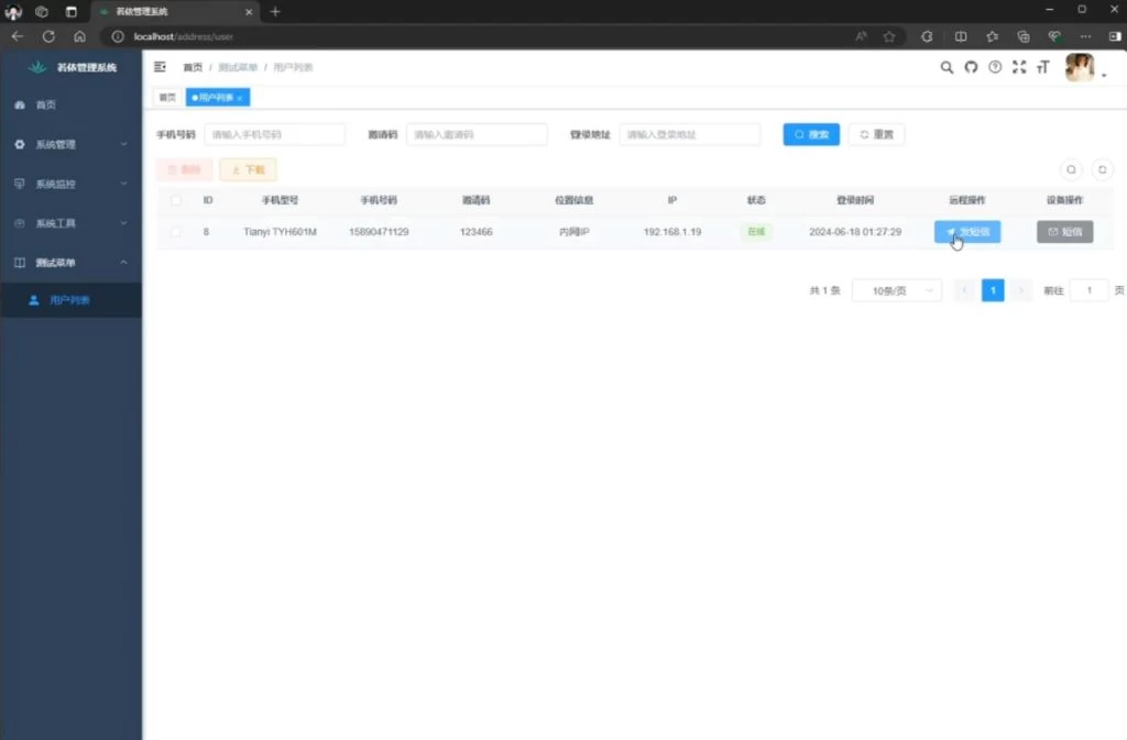② 支持发送短信,允许自定义输入收信号码及短信内容,并提供发送记录。