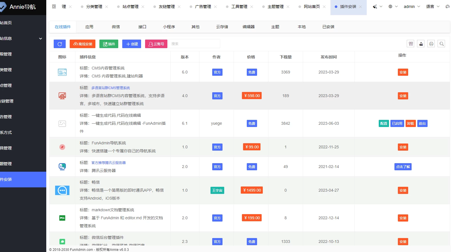 网站设置 分类设置 网站管理 工具管理 友情链接 广告管理 联系方式 主题管理