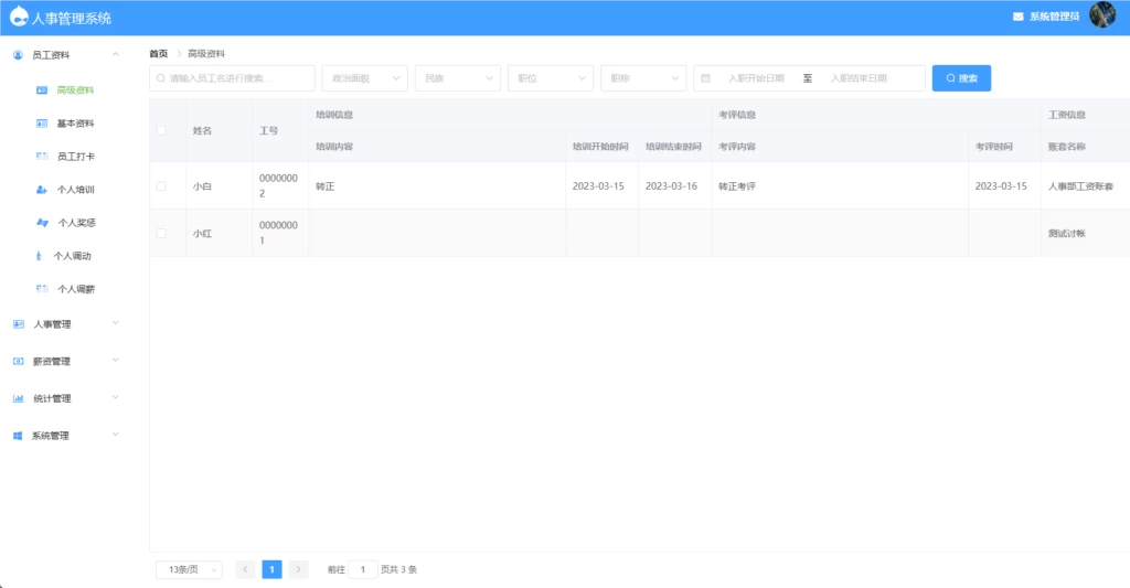 这是一套基于Springboot的人事管理系统,准确来说包含了Vue,本套资源含有论文和PPT,需要的小伙伴拿去吧
