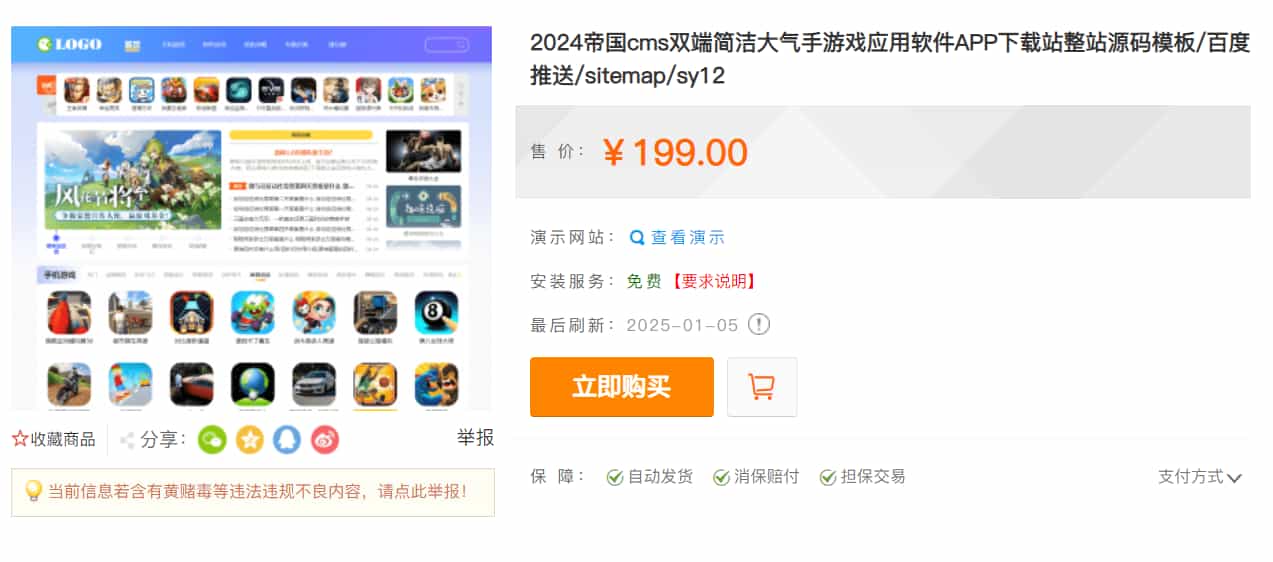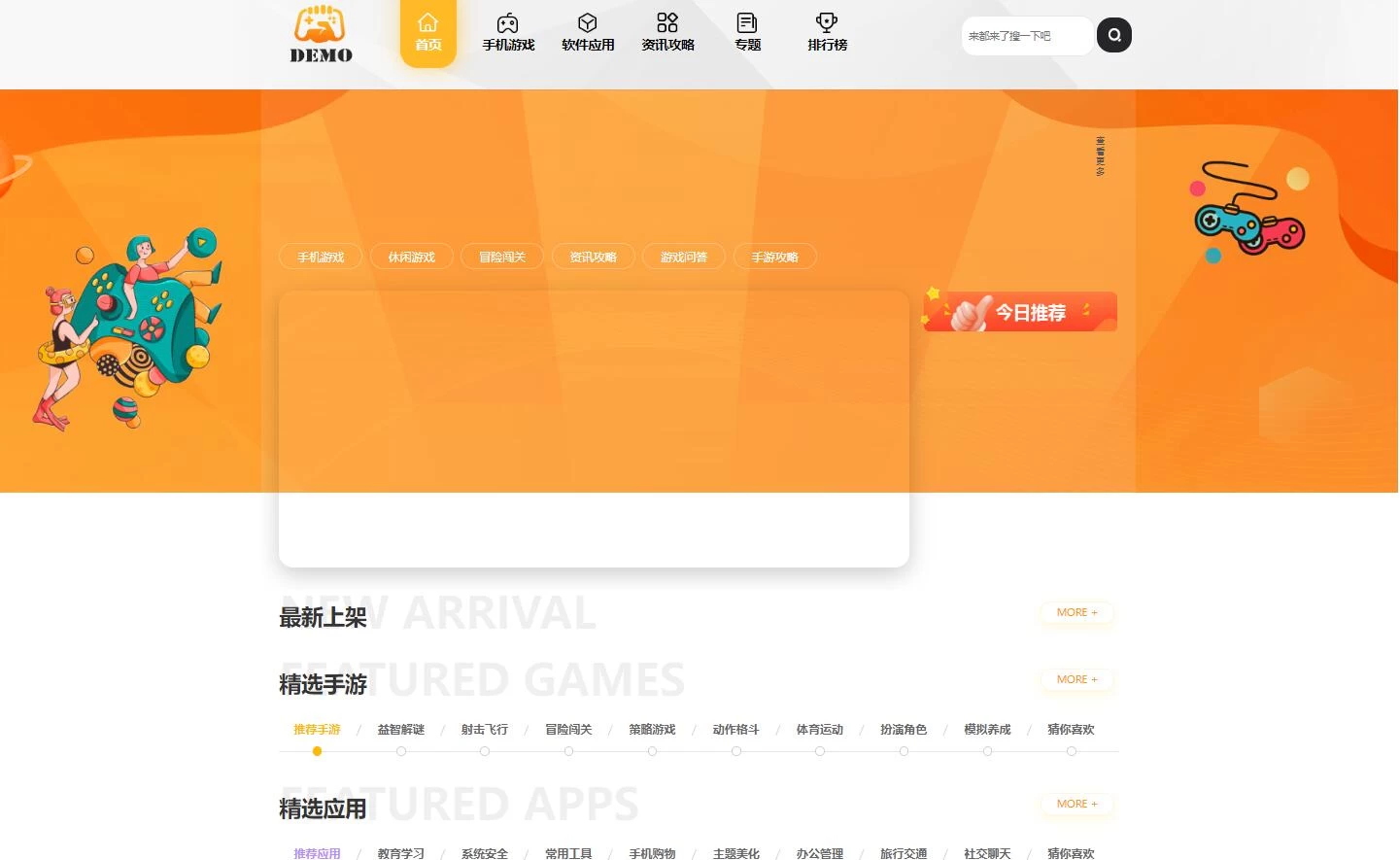 帝国CMS7.5手游游戏应用软件APP下载站整站源码模板/百度推送/sitemap/同步生成