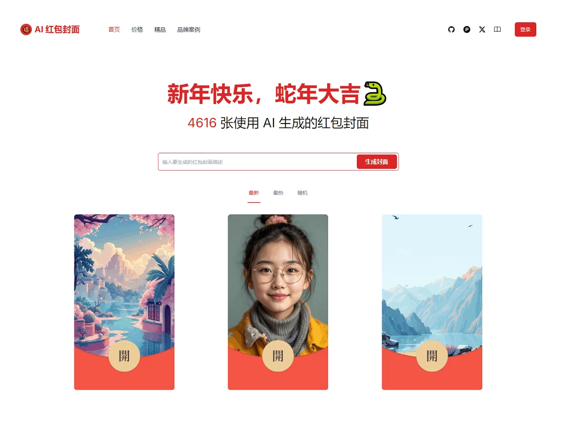 多种展示样式:用户可以选择查看最新、最热、随机或自己制作的微信红包封面,提供了丰富的展示样式以满足不同用户的需求。