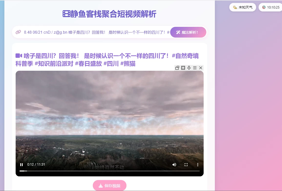 1.更换了失效的天气查询接口并增加用户欢迎 2.更改视频下载方式,使用FileSaver.js下载进行直接下载(而不是必须跳转到视频播放页面进行下载) 3.增加图集解析一键打包下载功能(使用JSZip.js) 4..更换更快的前端资源cdn,以及适配手机端(原版本只做了电脑端) 资源下载此资源下载价格为6.6U点点击检测网盘有效后购买,VIP免费立即升级客服QQ:305582964 联系邮箱:305582964@qq.com
