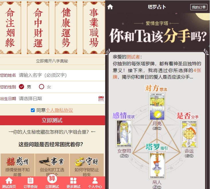 起名、星座、塔罗牌、姓名配对、公司起名、手机号吉凶、祈福点灯等等功能太多说不清