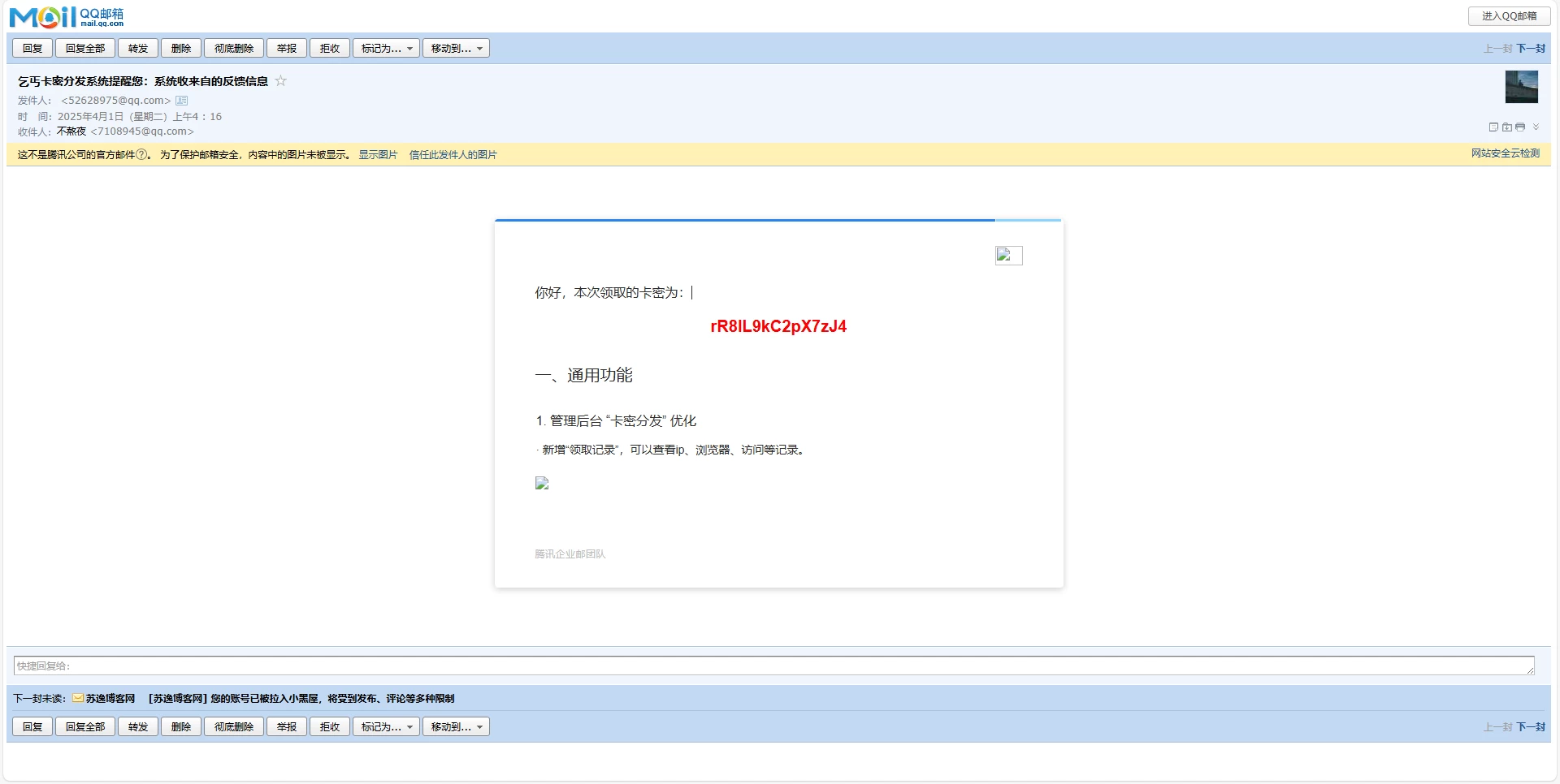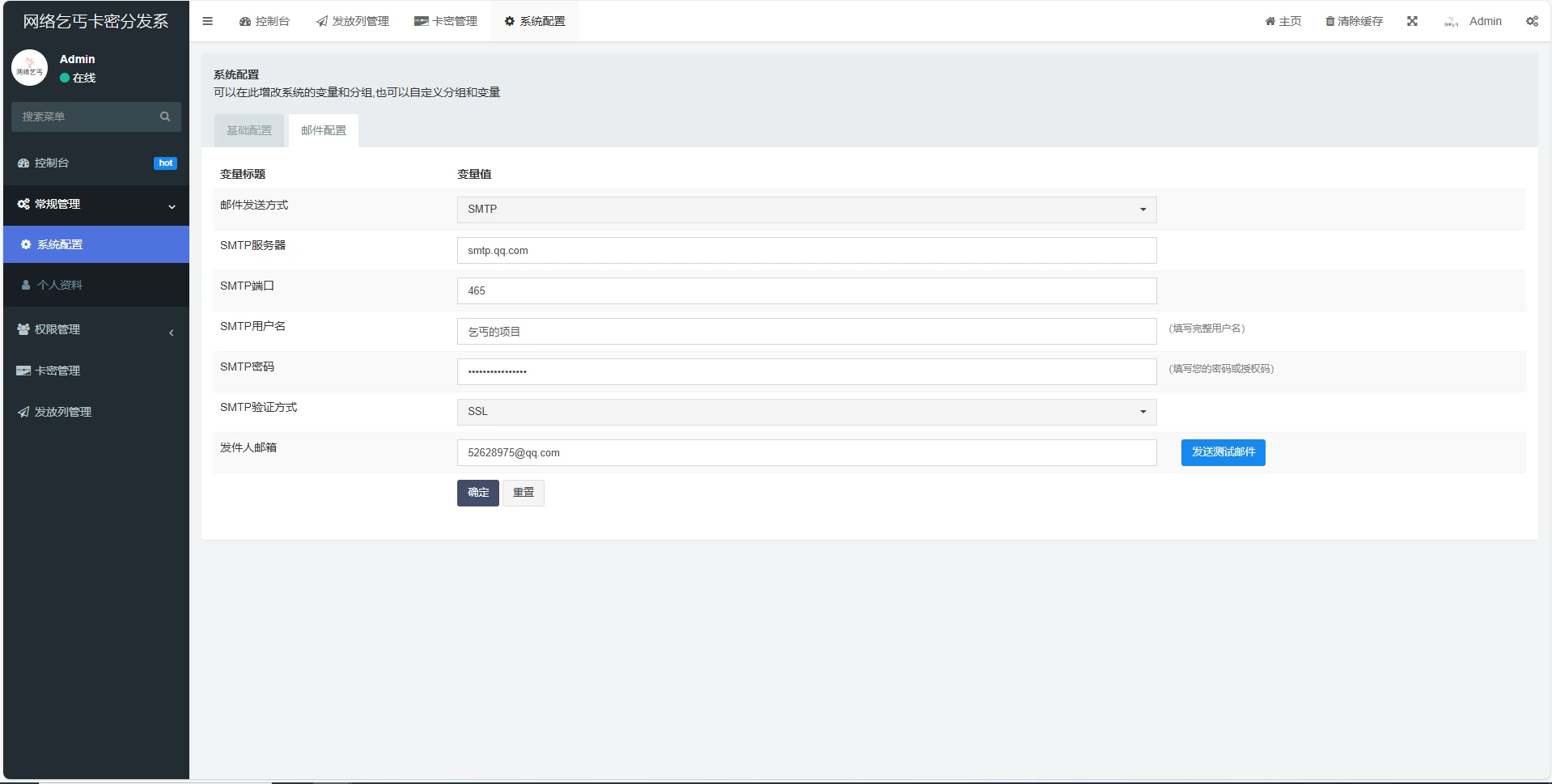 - 卡密通过邮件形式发送到对方邮箱,邮件模板可以自己进行替换