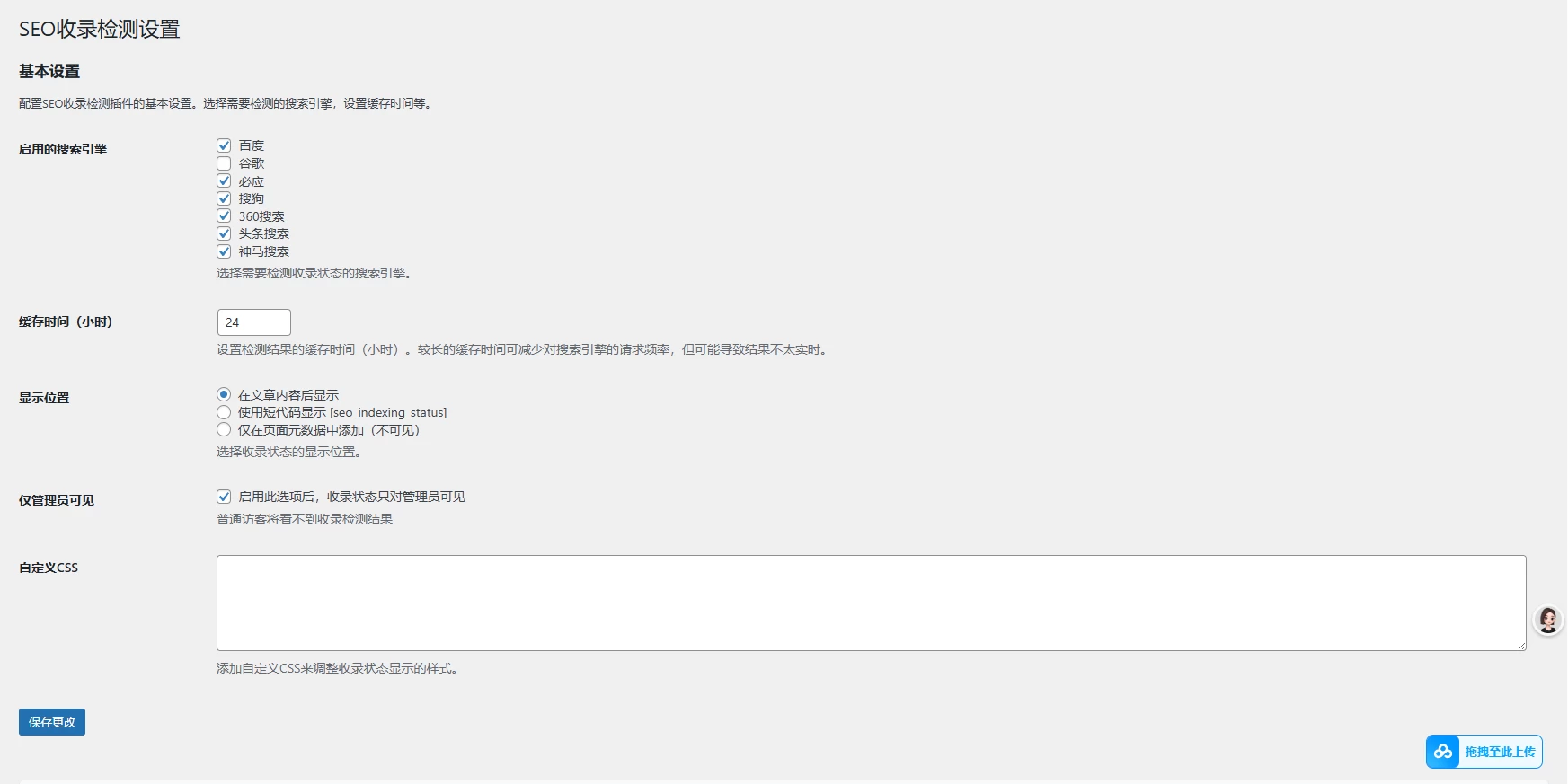 1. 在WordPress后台导航至”设置” > “SEO收录检测”