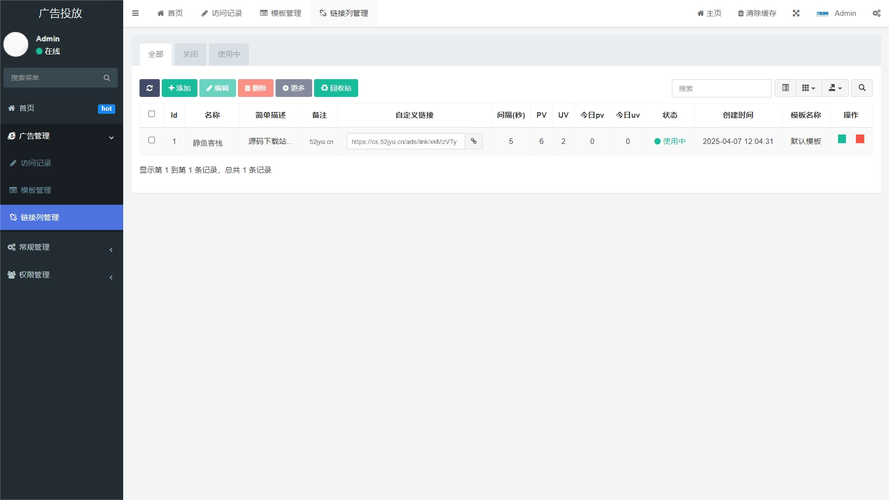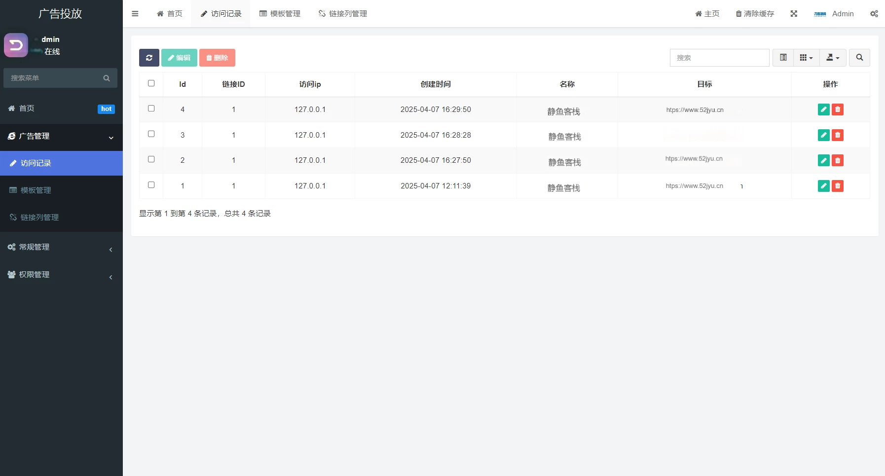一个专注于广告投放优化的开源系统,集成了精准定向和效果跟踪功能,助力使用者高效管理广告资源。用户可以追踪广告投放效果,查看访问人数并统计PV、UV数据。此系统提供多套跳转页面模板,让用户根据需求选择合适的样式。 用户可以自定义生成短链接,输入自定义的短链接后缀,系统会检查是否已经存在该短链接,若不存在则生成对应的短链接。根据需要创建个性化的短链接,方便分享和使用。 具体如下: