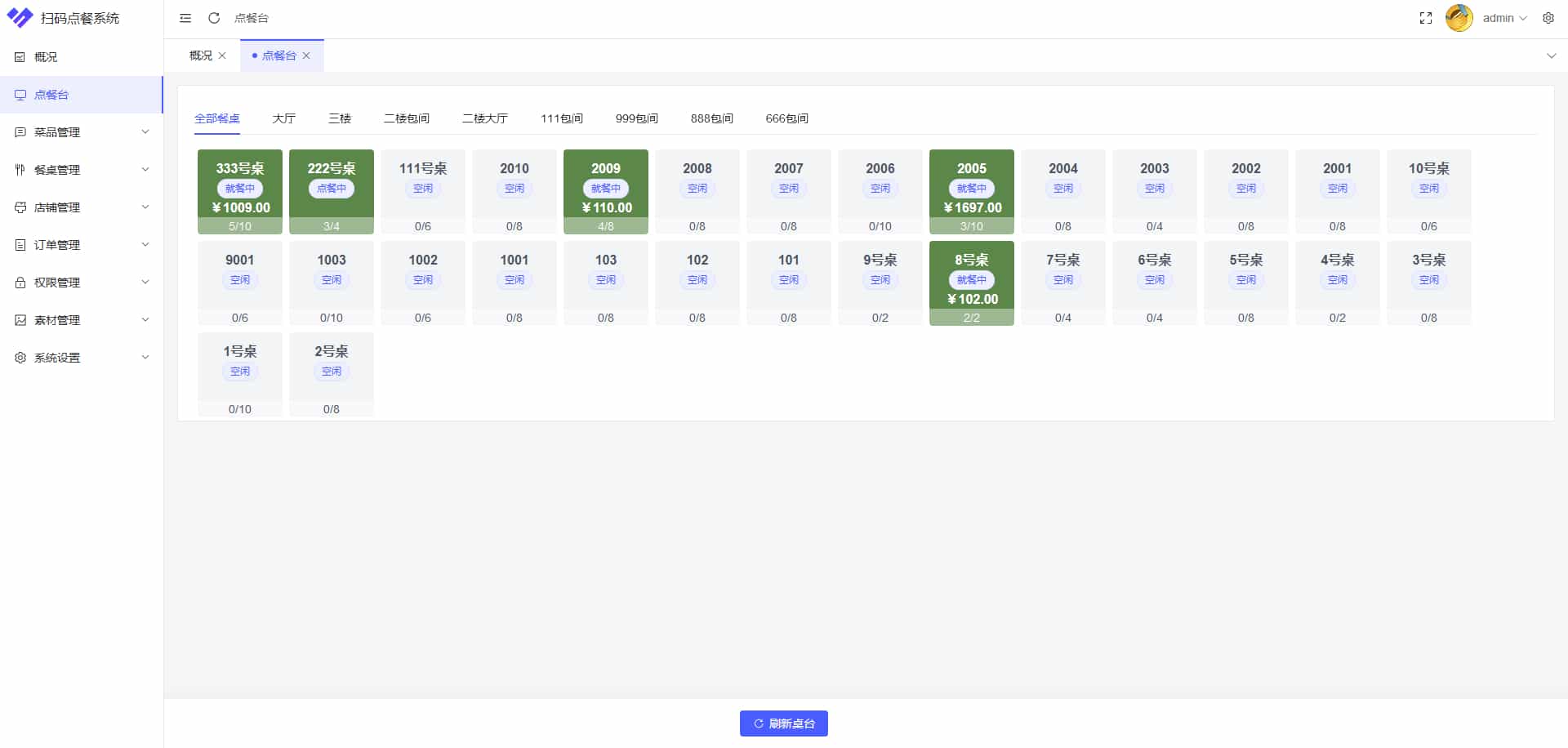 餐桌状态实时监控:餐桌的使用情况可以实时的展示出来,无需手动刷新,