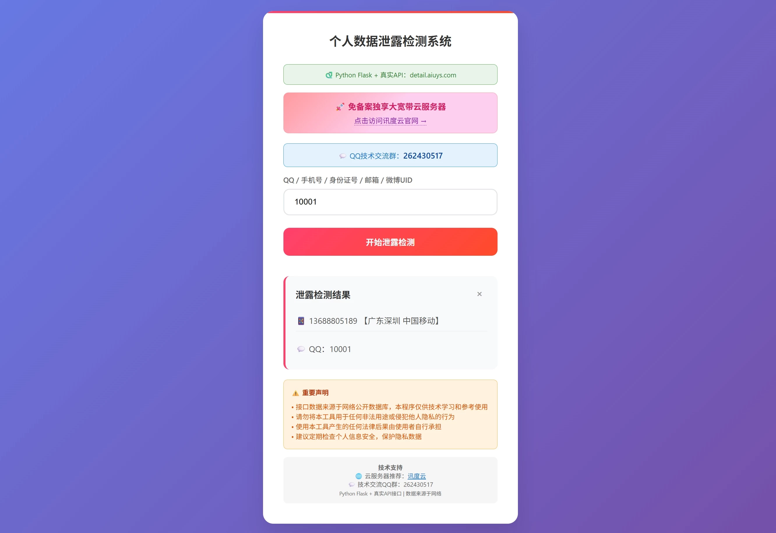 一个基于Flask的个人数据泄露检测Web应用,信息的检测。