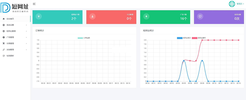 4.后台可统计短网址个数/广告个数/访问次数/每日收入图表等信息。