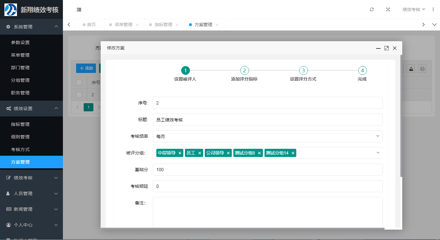 可以建立多套考核方案,可以设定各套考核方案不同的考核对像。