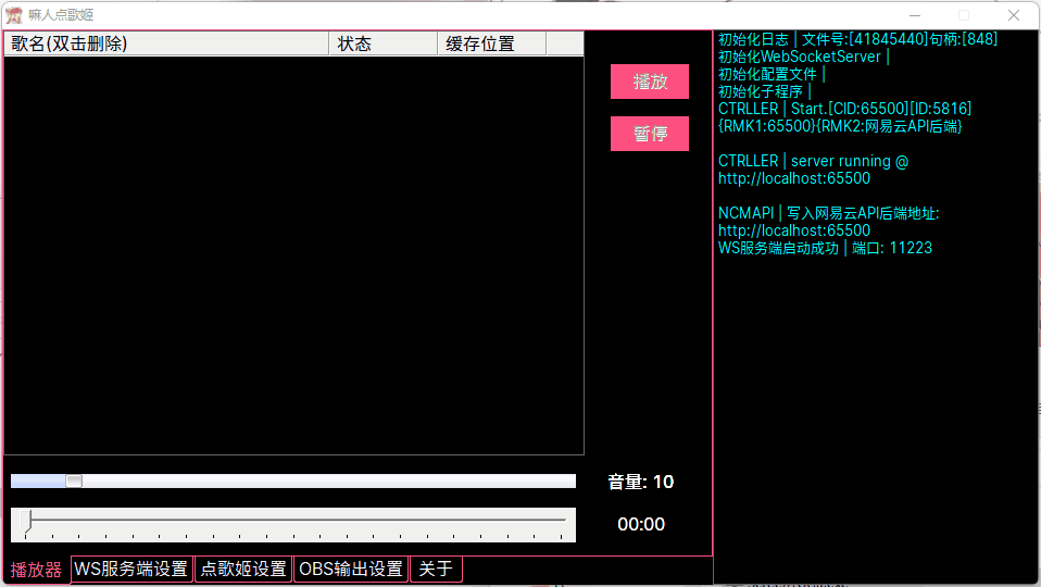 点歌姬会创建一个WS服务端,客户Duan连接并发送关键字文本即可点歌