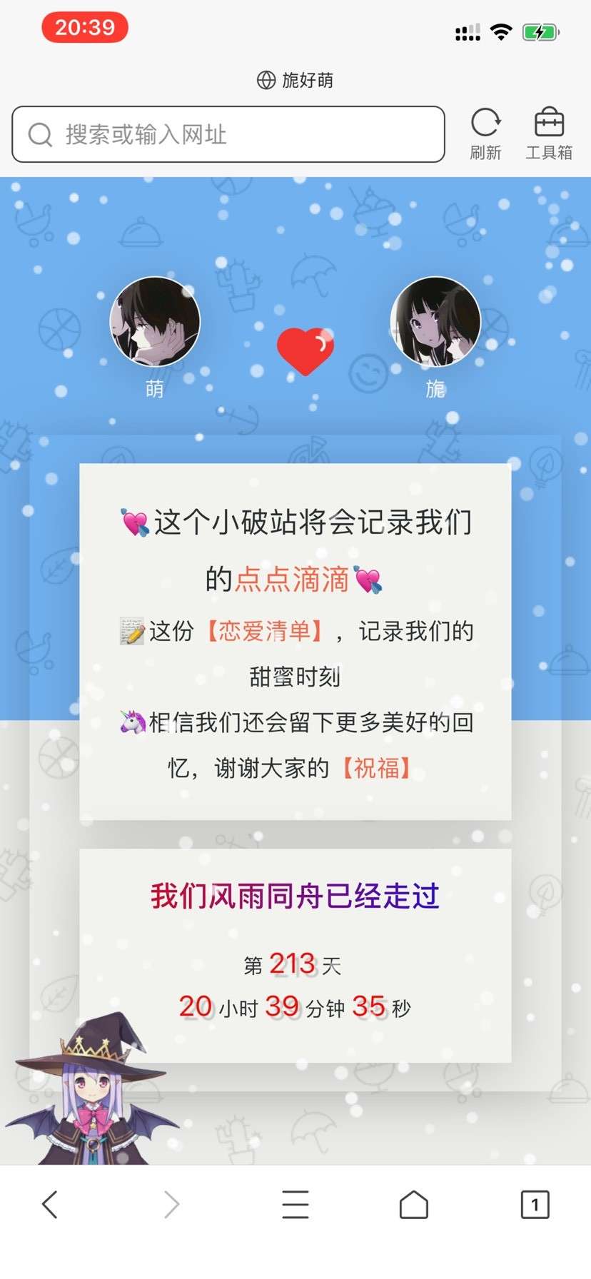 1、首页的头像、昵称、计时器开始时间、祝福页面的链接均在主题的外观设置实