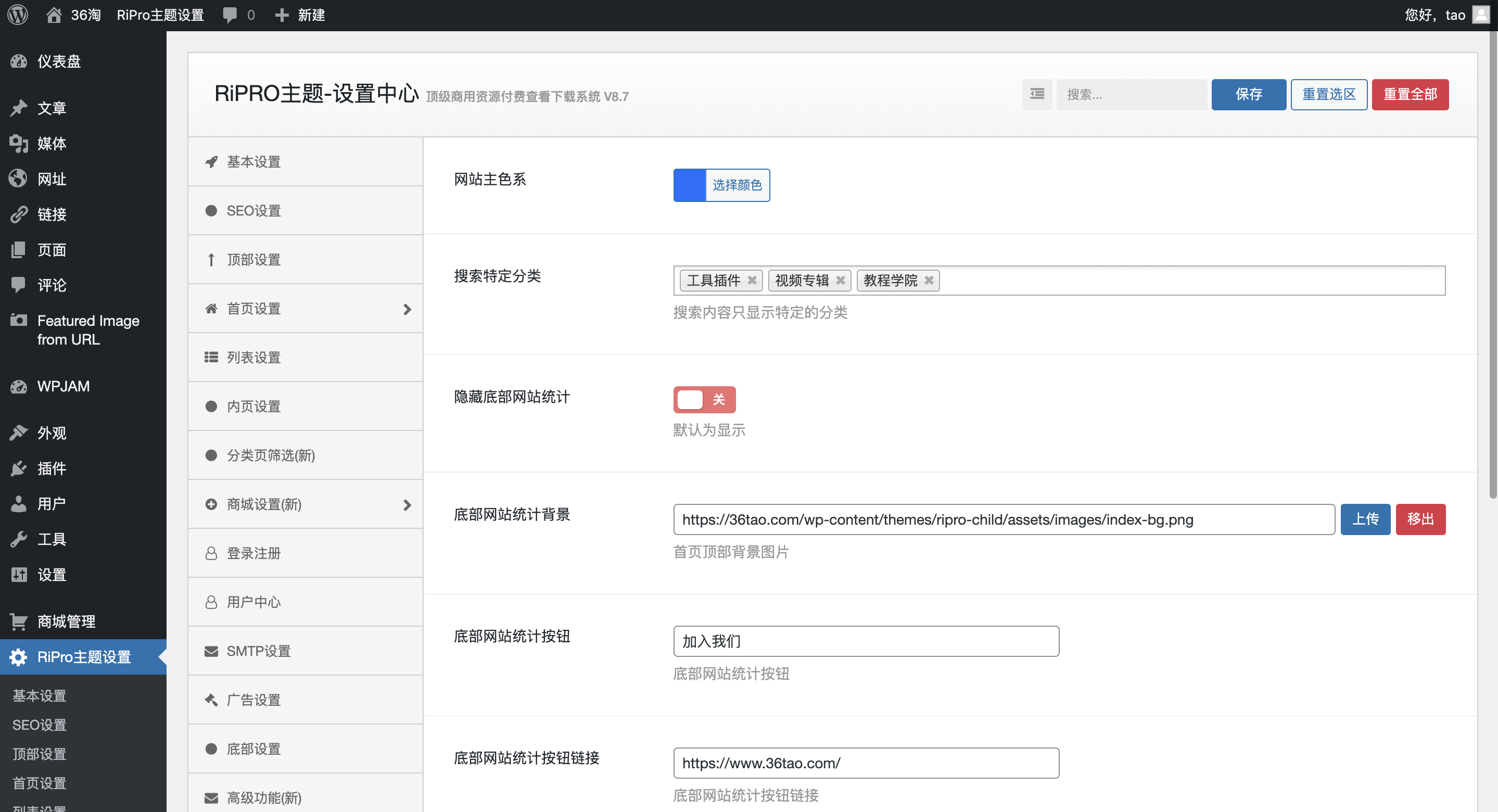 主题特色:无需替换RIPRO原主题包任何内容即可实现后台全功能开关修改!!!
