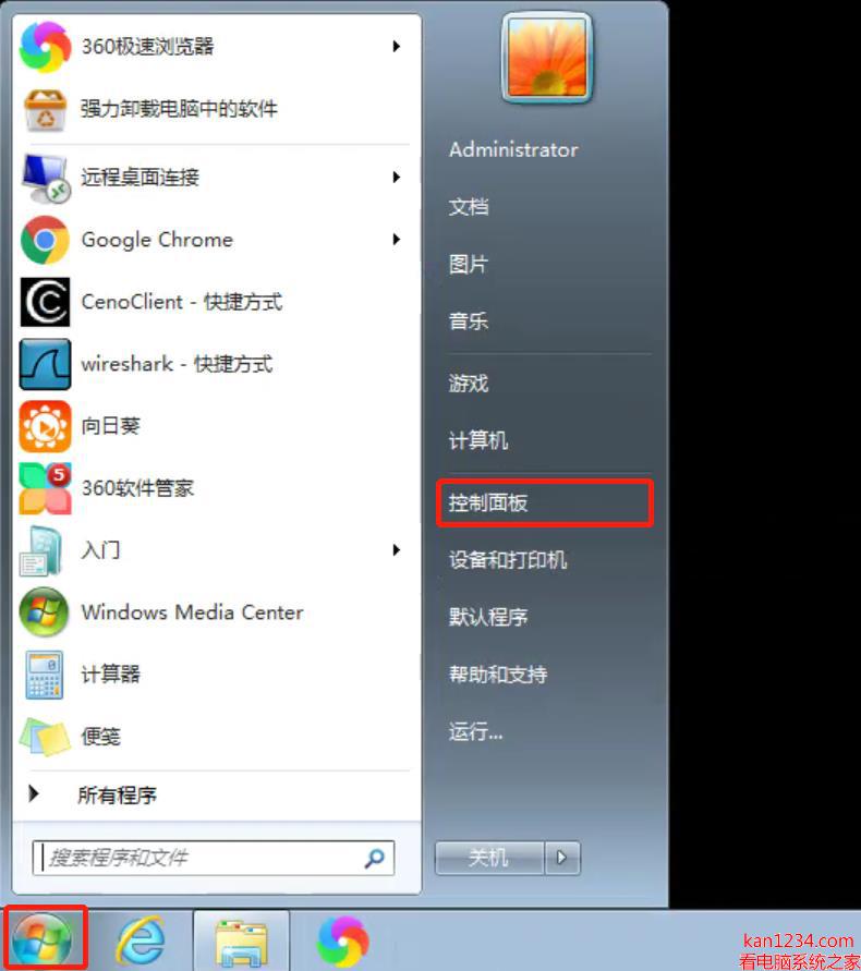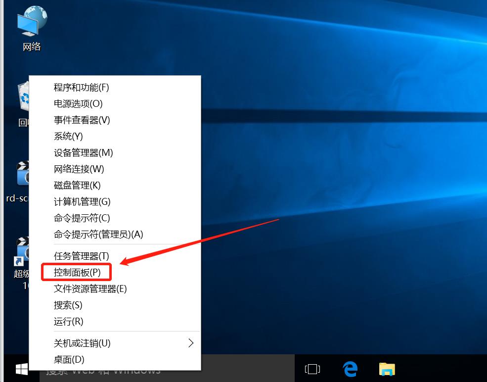 第一步:右击右下角的开始菜单–》“控制面板”。