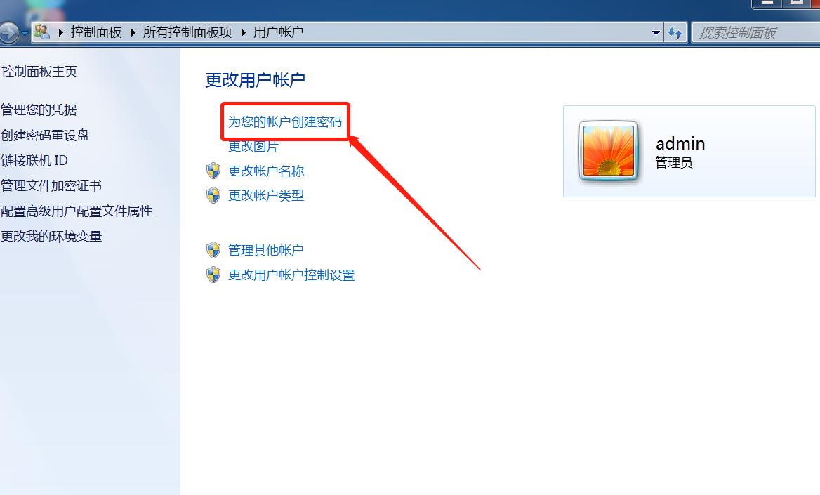 第三步:在弹出的“用户帐户”点击“为您的帐户创立暗码”。