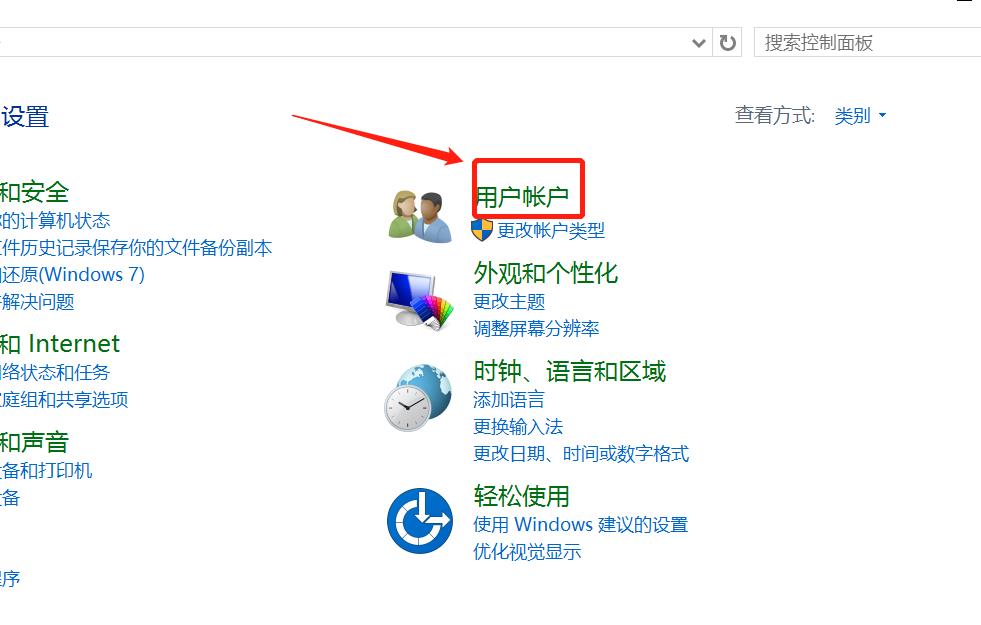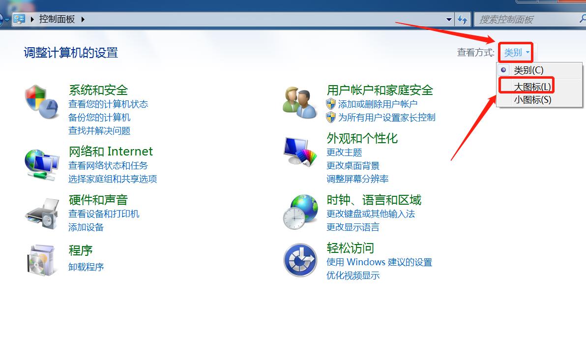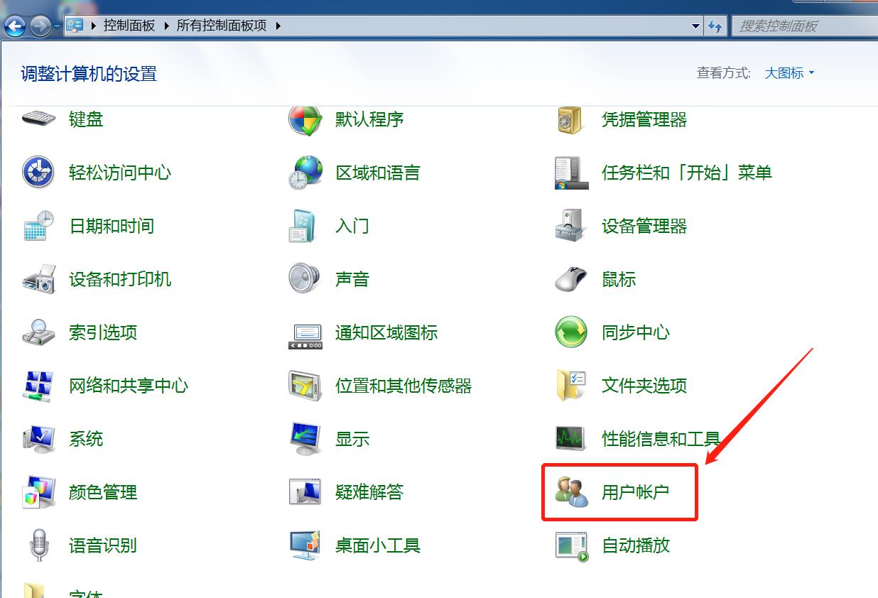 如果在视频教程中的“控制面板”找不到“用户帐户”,那么就需要点击“类别”然后选择“大图标”。