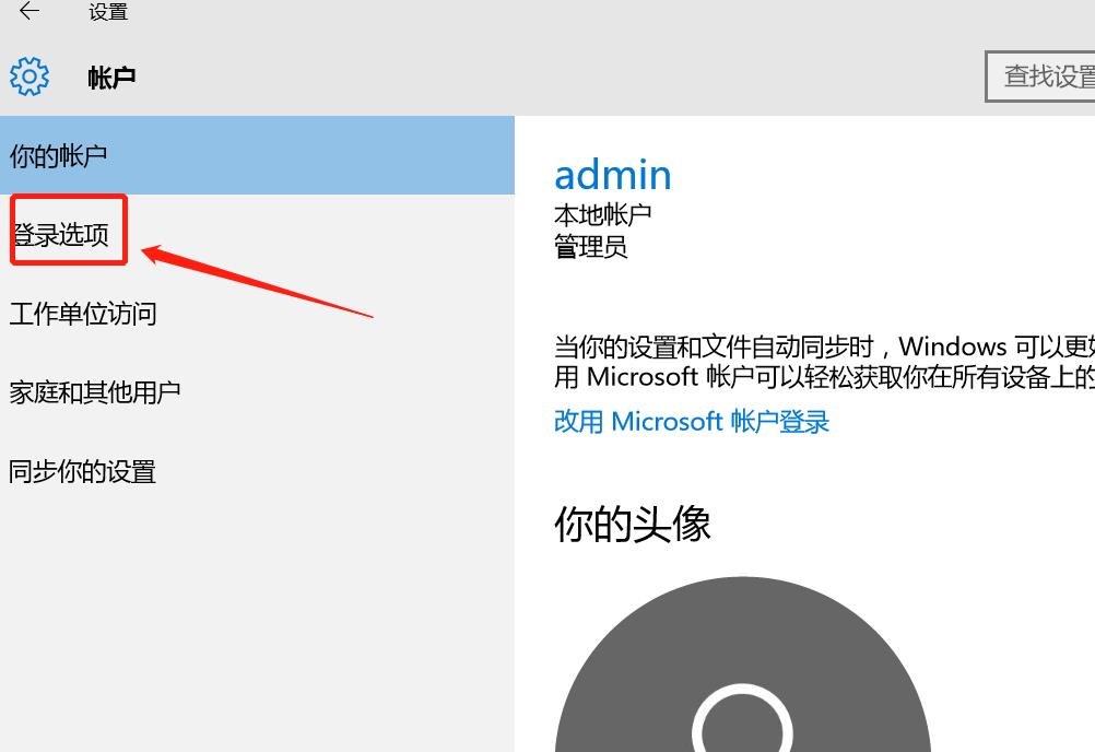 第四步:在弹出的“帐户”窗口中点击“登录选项”。