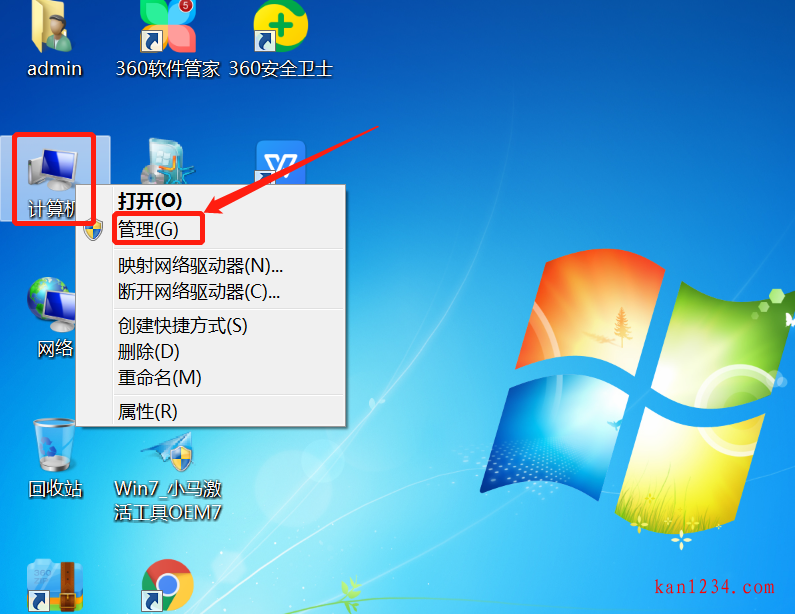 第一步:右击桌面上的”计算机”在弹出的菜单中点击”办理”.
