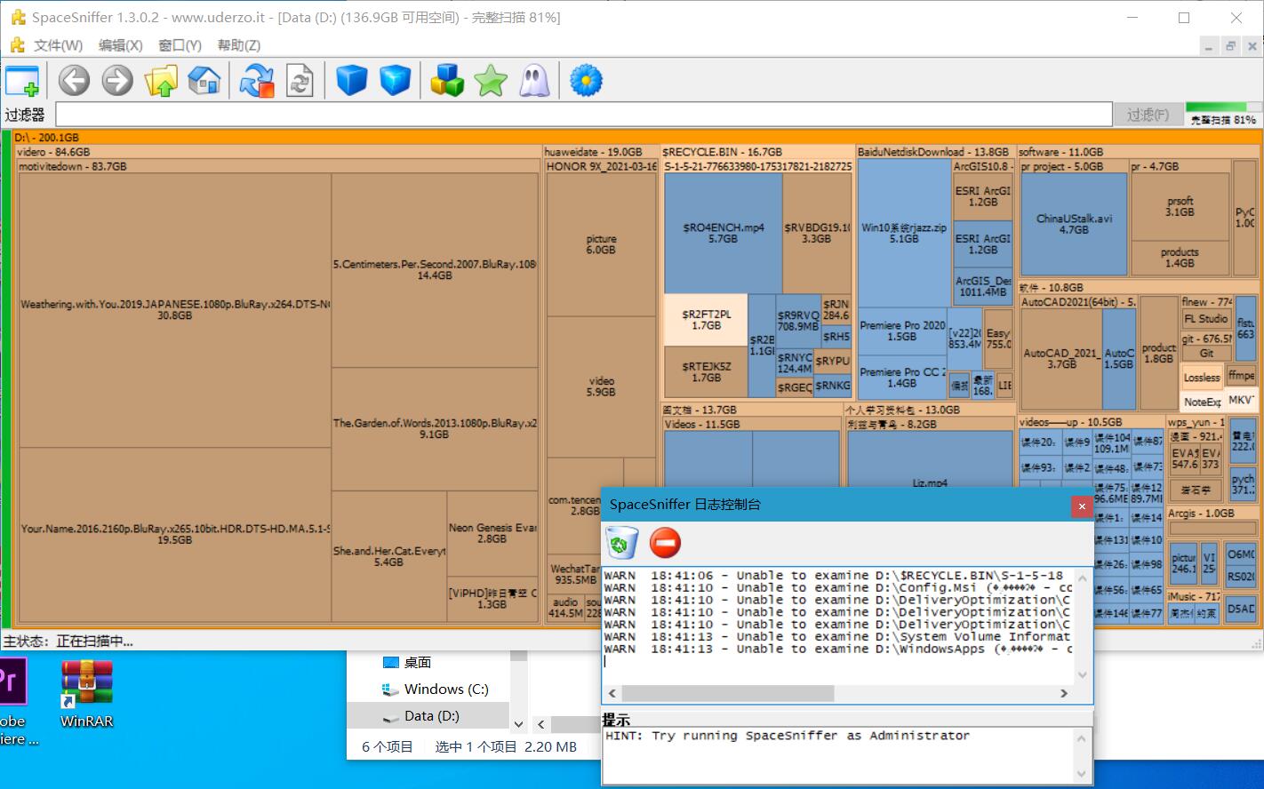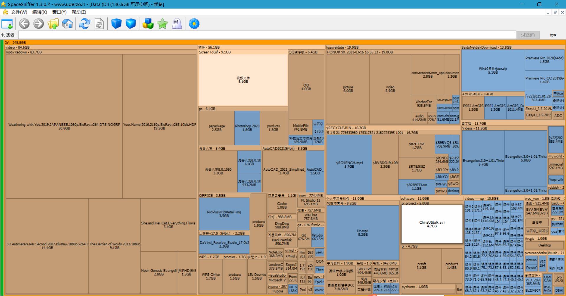【软件介绍】:SpaceSniffer 可让您了解文件夹和文件在磁盘上的结构。它能以图模式直观地为你显示到底你的硬盘空间是怎么用掉的, 您可以立即看到某个文件在磁盘中到底有“多大”!