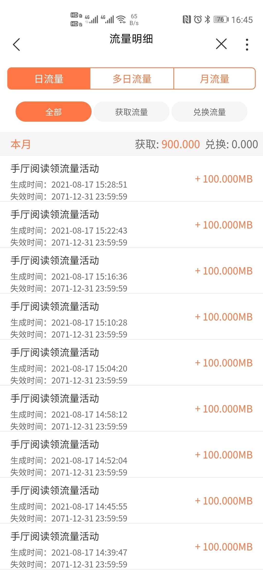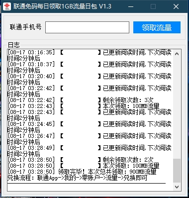 软件每日自动领取1G流量日包,需运行1小时,每6分钟自动领100M,每天上限1G,每天只需点击一次领取即可挂机自动领取!