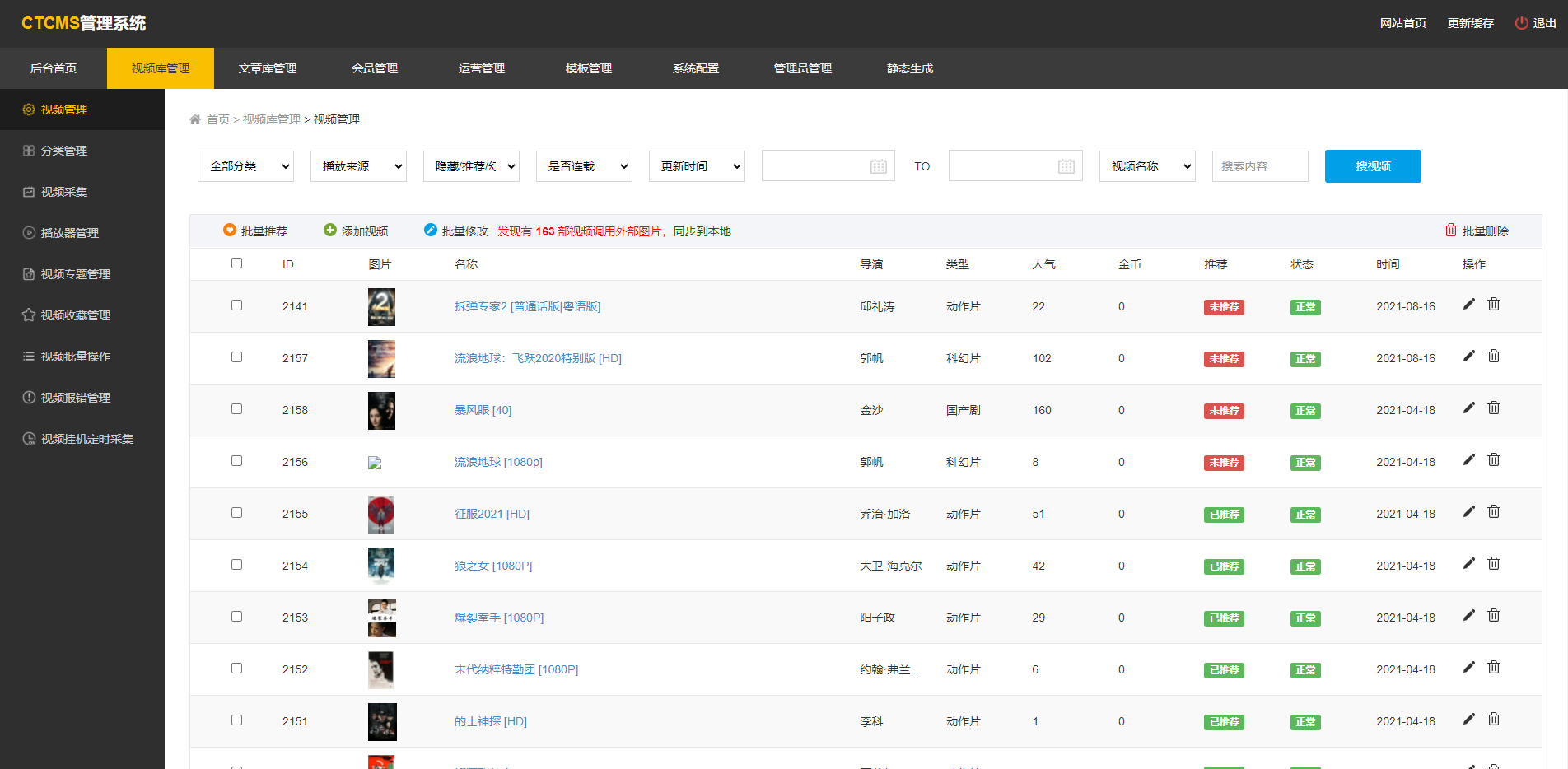 是一套PHP+Mysql开发的视频管理系统,采用CI框架核心开发,体积小、运行快,强大缓存处理,自主研发的模板引擎标签简单易用, 后台支持一键增加视频, 附带官方资源库,支持会员点播、包月观看,点卡、广告、在线支付、留言求片、友情链接,只要略懂HTML的就可搭建一个强大的视频网站