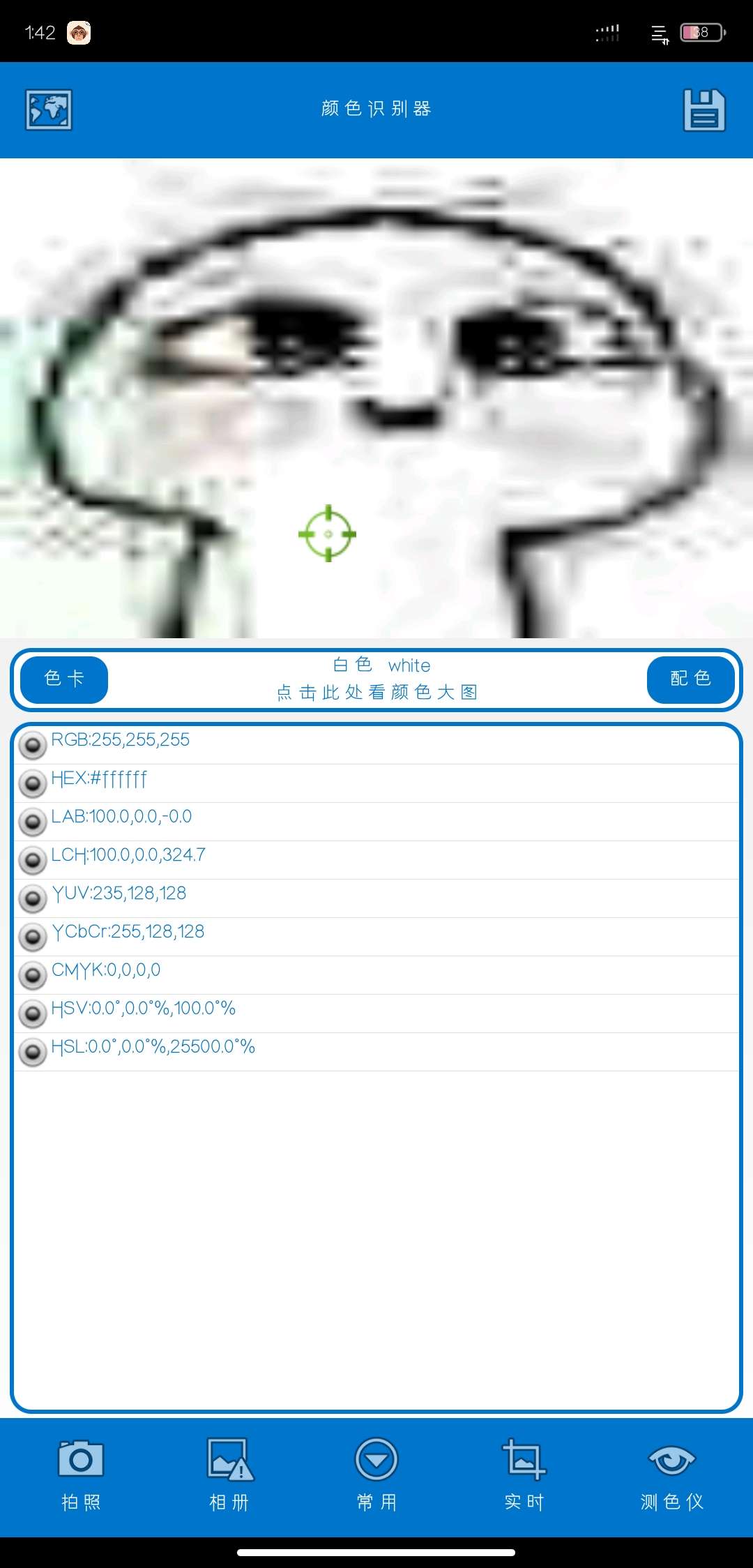 3.实时识别颜色:可以利用手机的摄像头的预览功能,然后识别中心点的颜色信息。