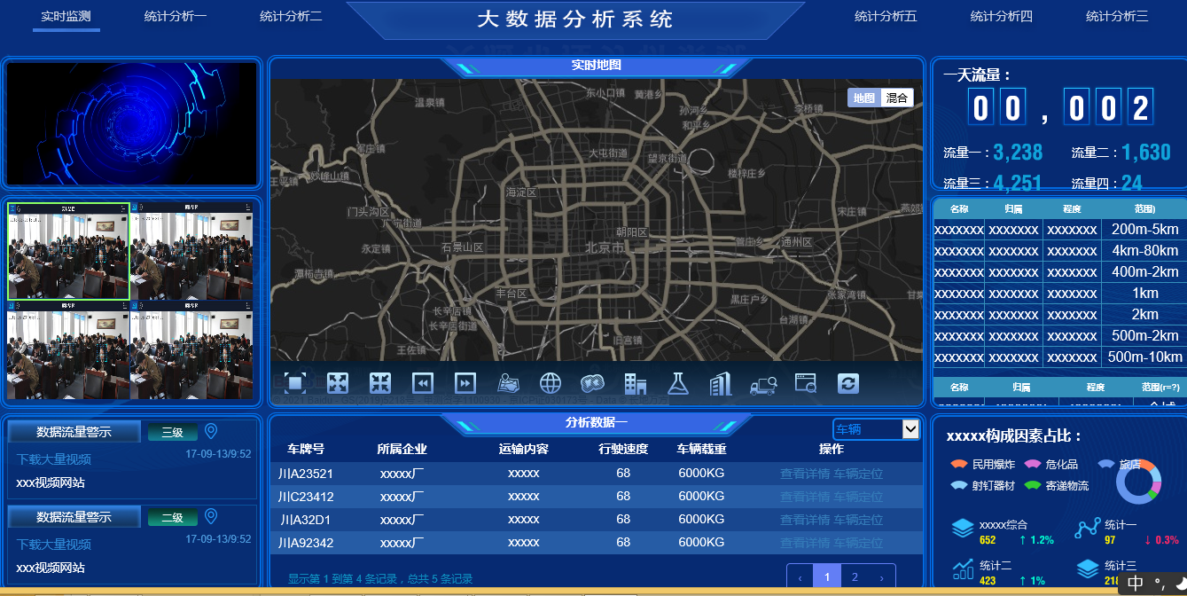现在老板都很在乎公司实力形象 往往会在大厅投进展现大数据巨屏 你是否也想完成这样大数据效果展现 本次带来一套开源的前端可视化大数据交互动态模板网页前端模板,是HTML网页模板 只需稍微懂点前端技能的都会修正 如你有技能的能够加后端真实调用真数据展现!