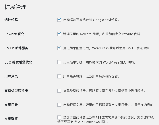 我把一些大部分人来说不常用但是对于某些人又非常使用的功能做成了扩展,放到扩展管理里面,你根据自己的需求去启用它。