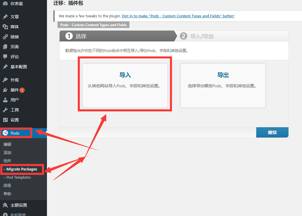 下载压缩包中的pods.html字段,使用hbuidler x打开pods.html文件复制一切内容,在wordpress后台pods插件中从头导入字段。