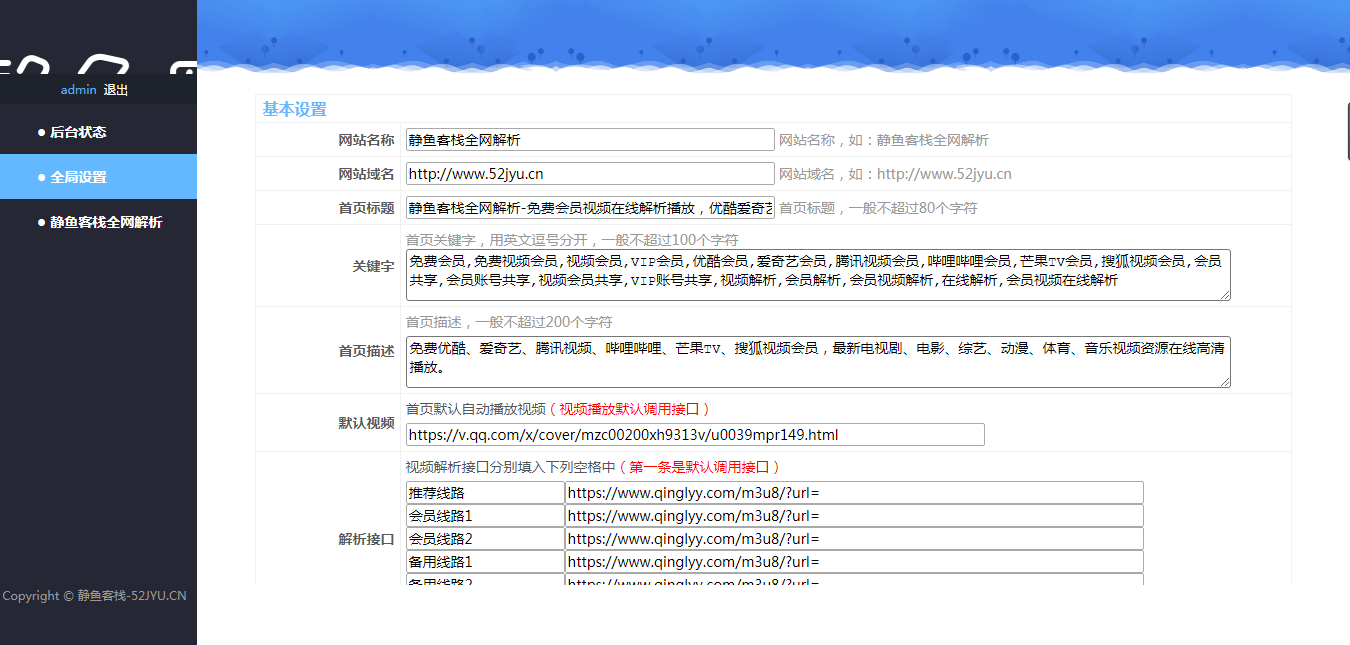 简单清爽风格VIP视频解析网站源码,比较简单,直接上传到服务器即可使用,带后台可以自主在后台更换解析接口。 在后台也带了很多广告位,如果有需要也可以自己添加广告。 后台地址:域名/admin 账号:admin 密码:52jyu.cn 资源下载此资源下载价格为3.3U点点击检测网盘有效后购买,VIP免费立即升级客服QQ:305582964 联系邮箱:305582964@qq.com