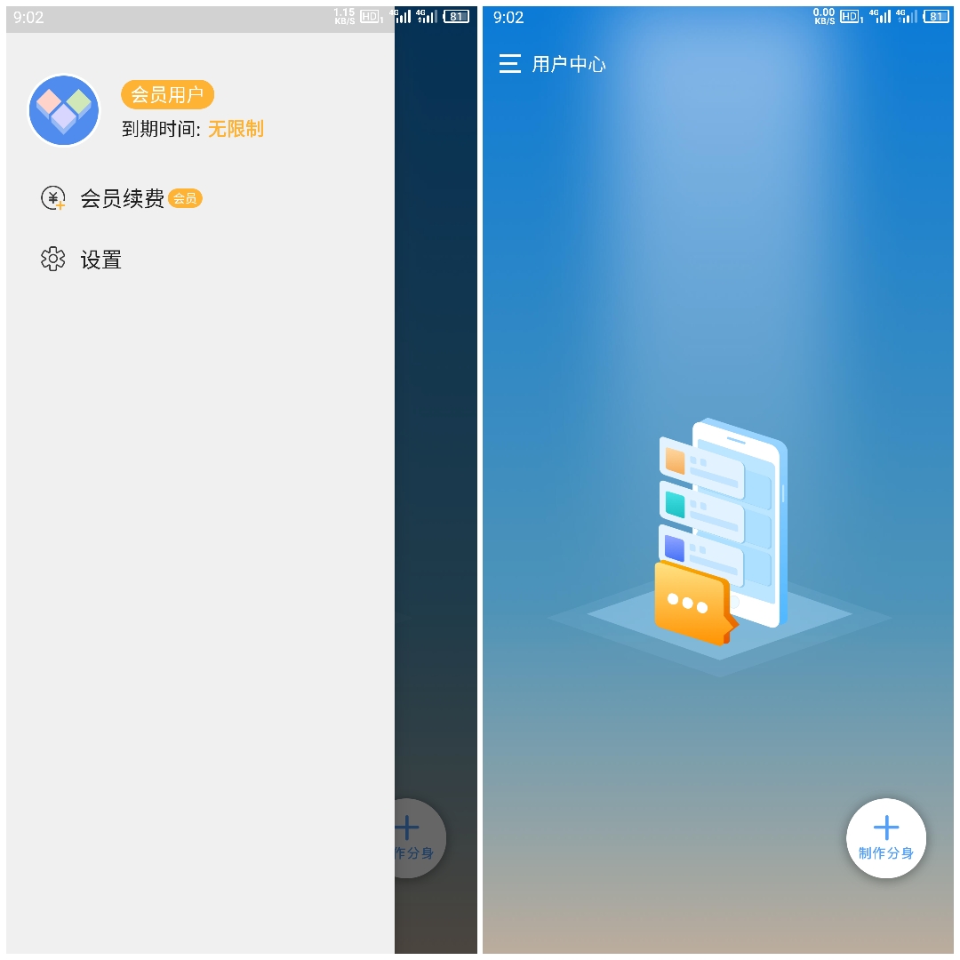 2.制作成功后,请勿删除本应用,以免出现分身无法正常使用的情况,
