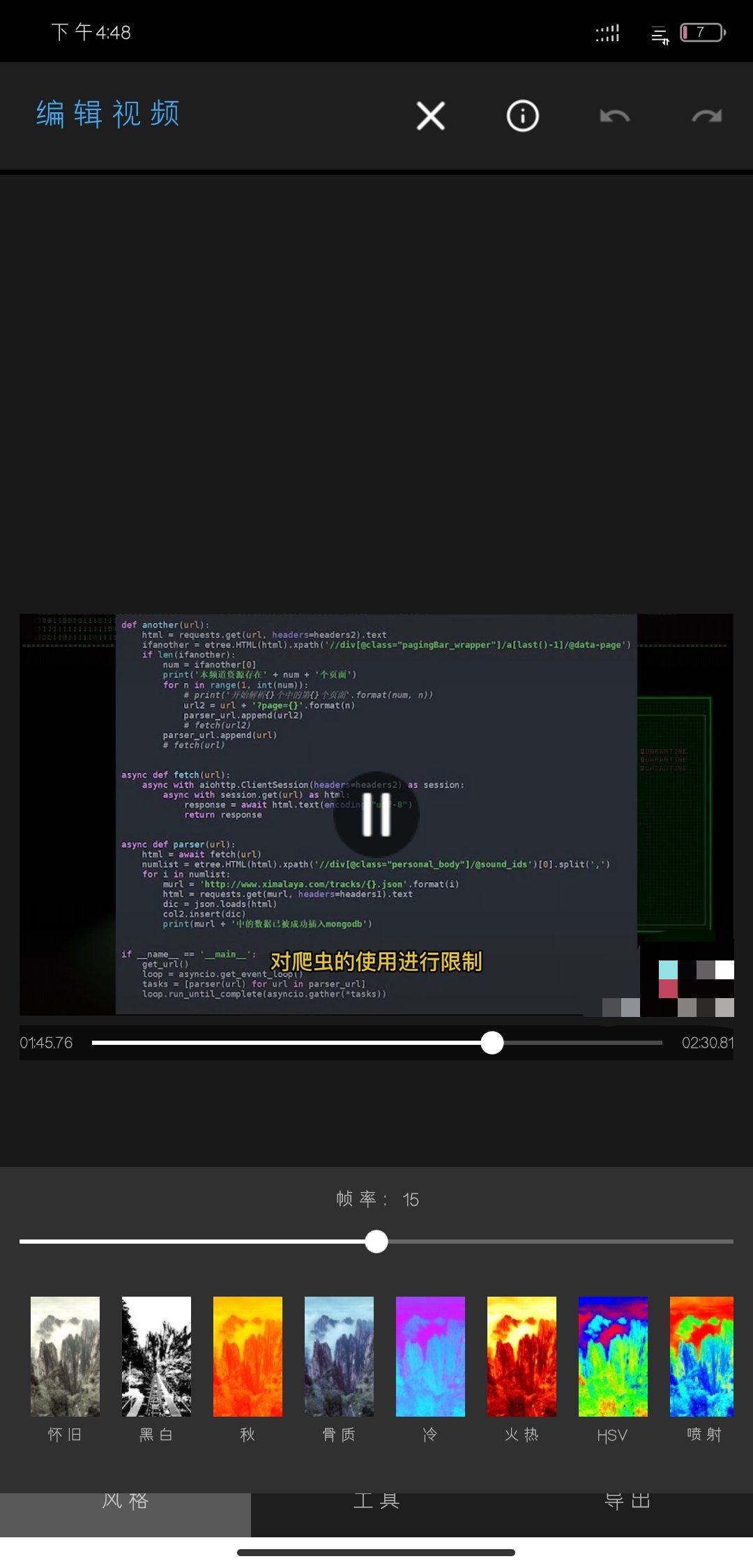 App拥有包括20多个常用音视频编辑操作,裁剪时长,剪切画面、倒放、调速、音频混音、拼接、字幕等等。