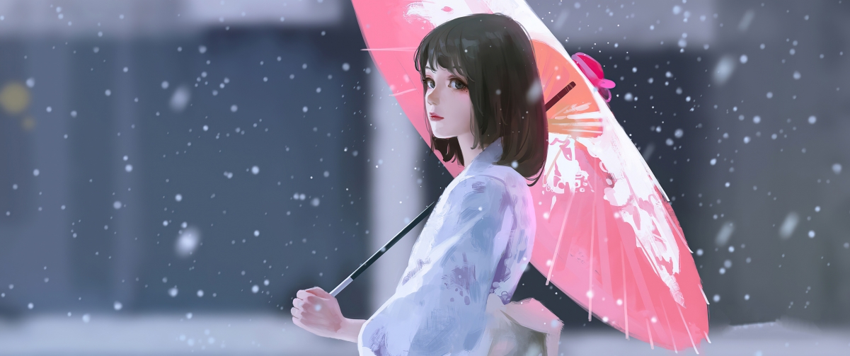 静鱼客栈 壁纸图库 雨伞 雪 女孩白色连衣裙 和服 带鱼屏壁纸 https://wp.muooy.cn/6755.html