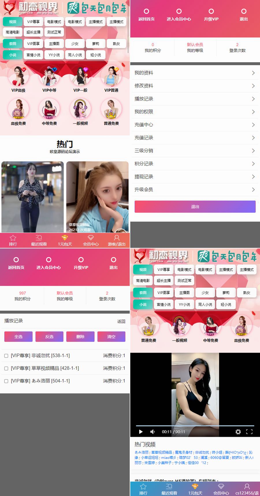 特点:可包天+包月+包年消费;原创二开;主播模式+电影模式(随意切换)