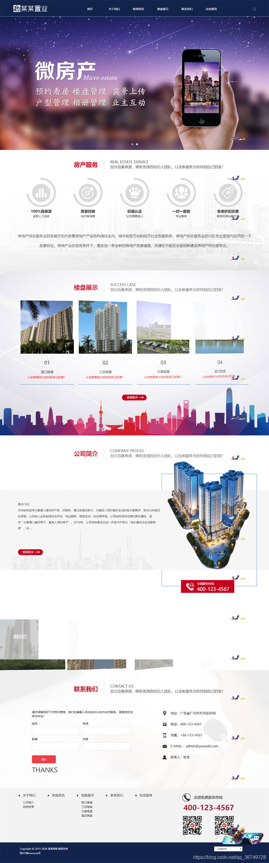 此款源码适合基建、施工、地产、物业等房地产类企业拿来做自己的企业官网,前端采用自适应HTML5模板,自动适应手机端和电脑端页面,所有数据全部打通,只需要一个后台即可。