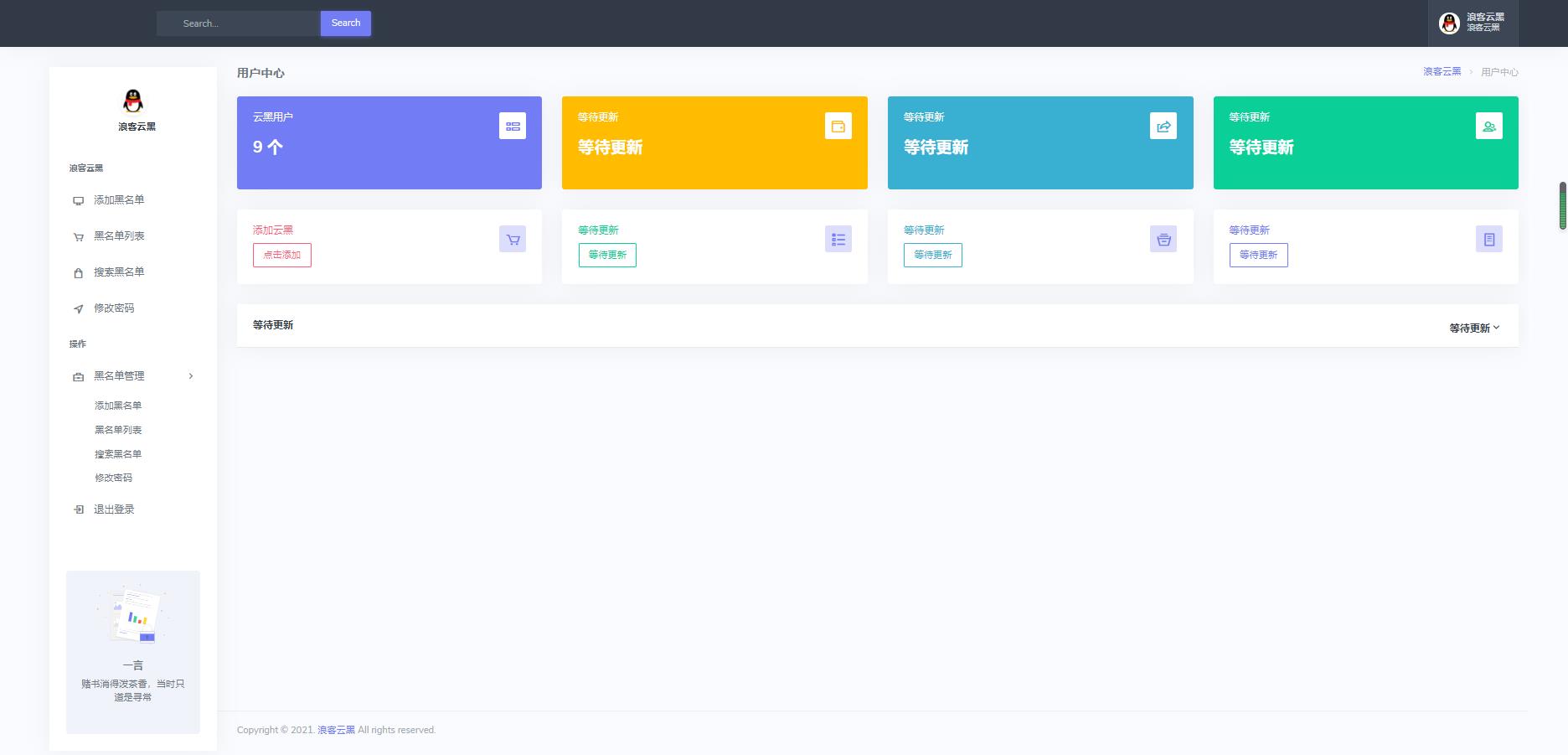 介绍: 浪客云黑3.0预览版船新的云黑给你不一样的体验 本次更新内容为 重写布局UI(后台/用户) 插件全新升级3.0 插件重写了UI 预计下一个版本将更新宝塔功能 以下为部分界面截图 图片: 资源下载此资源下载价格为6.6U点点击检测网盘有效后购买,VIP免费立即升级客服QQ:305582964 联系邮箱:305582964@qq.com