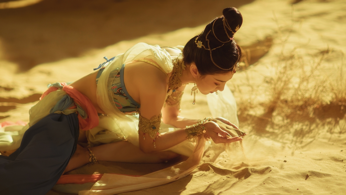 鸿音 敦煌 唯美美女双手捧沙子 侧脸4k壁纸3840×2160 -静鱼客栈